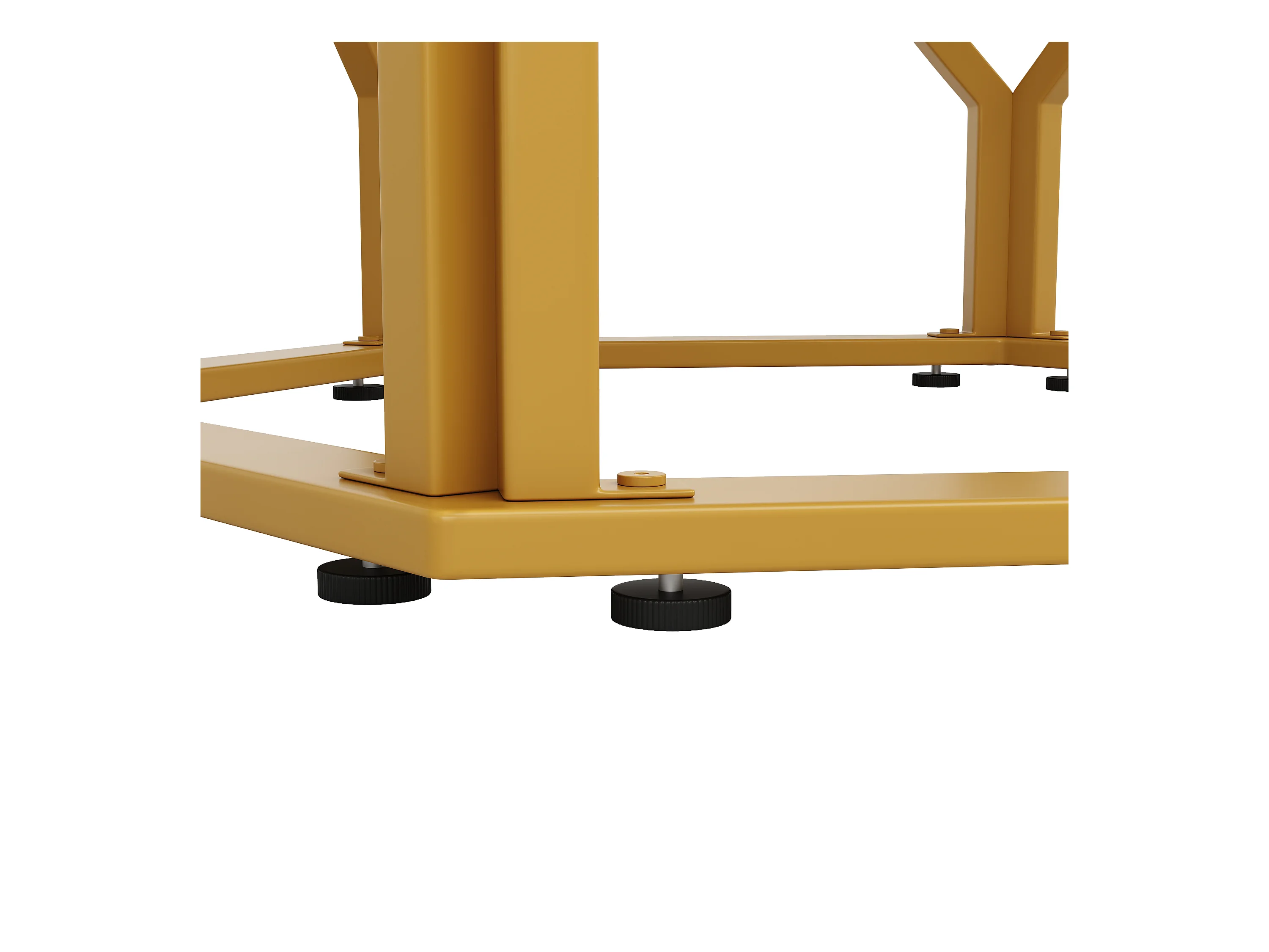 Mesa redonda, tablero de MDF jaspeado, patas de metal negro y dorado (80x80x76 cm)