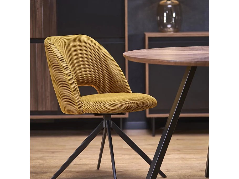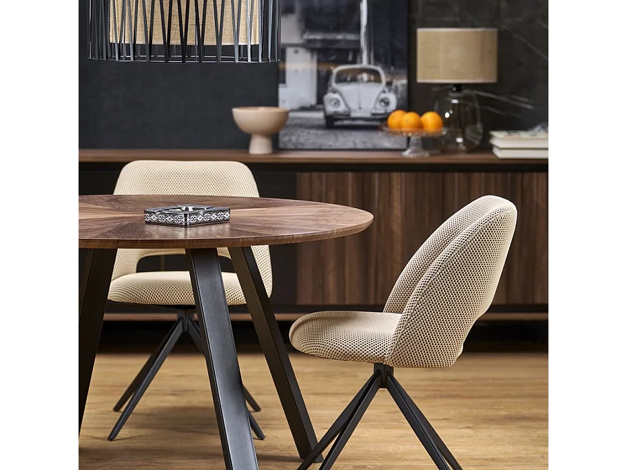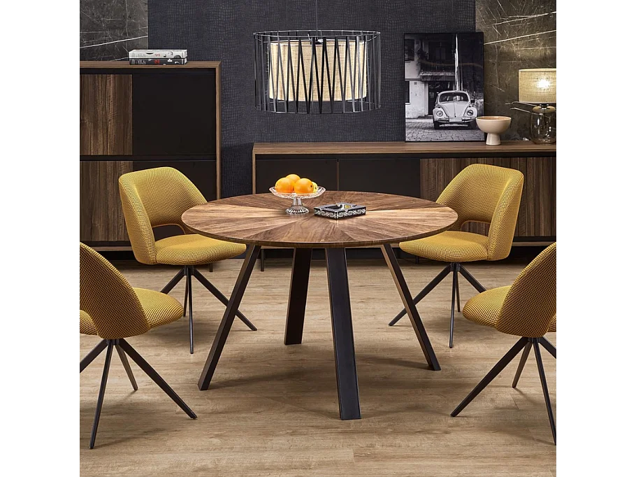 Mesa de comedor redonda de 120 cm con tablero de nogal y patas negras DANILO