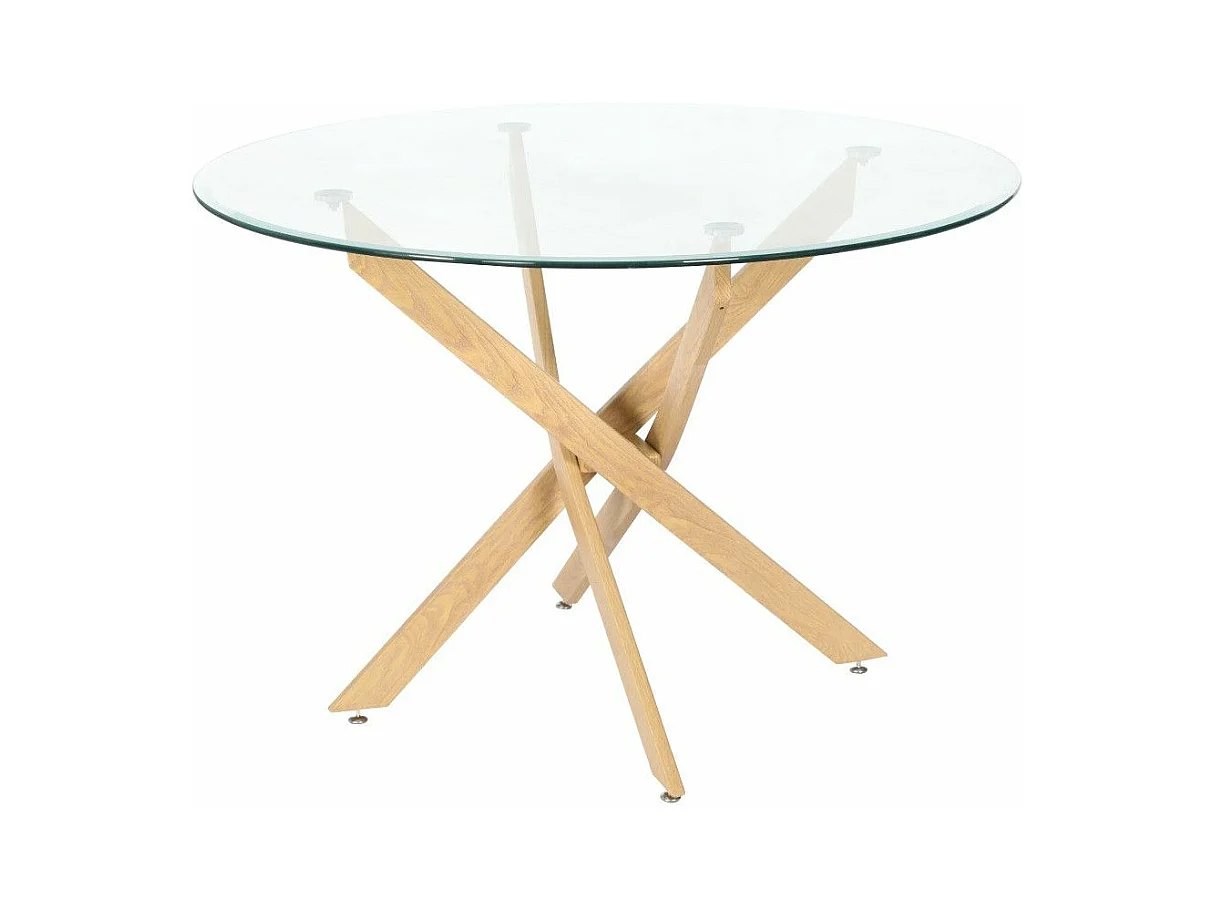 Mesa de comedor redonda de 73x110 cm con sobre de cristal y patas de madera Dan