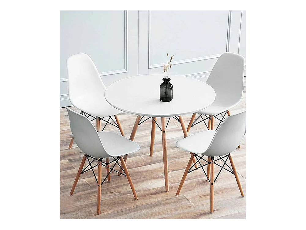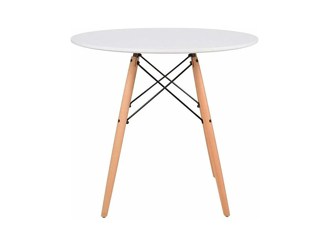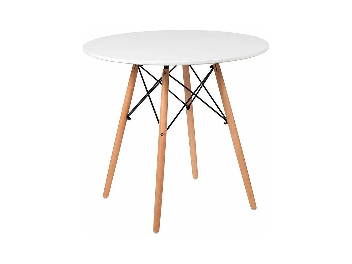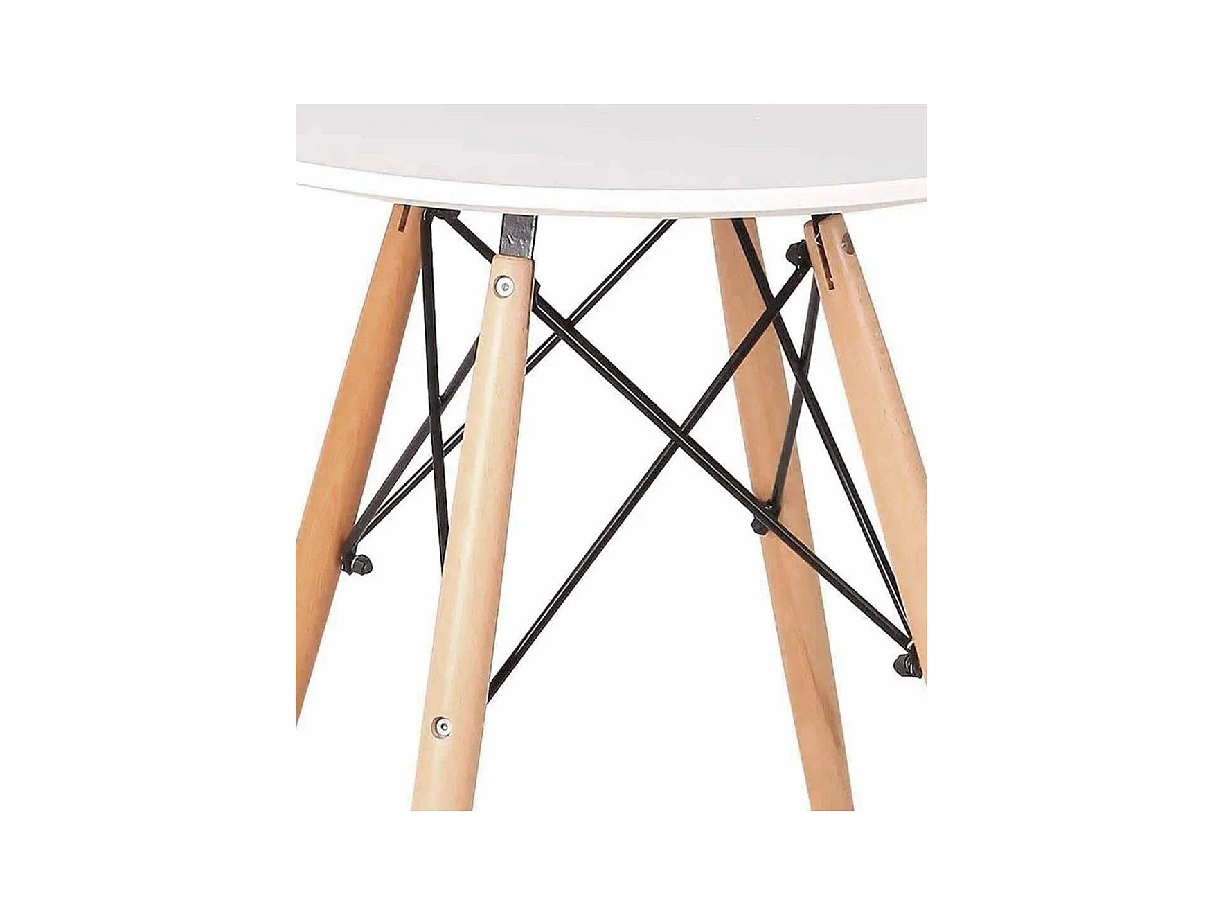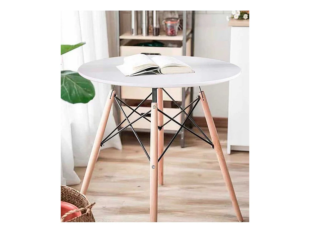Mesa de comedor redonda de 75x80 cm con patas de madera y sobre en color blanco Nórdica