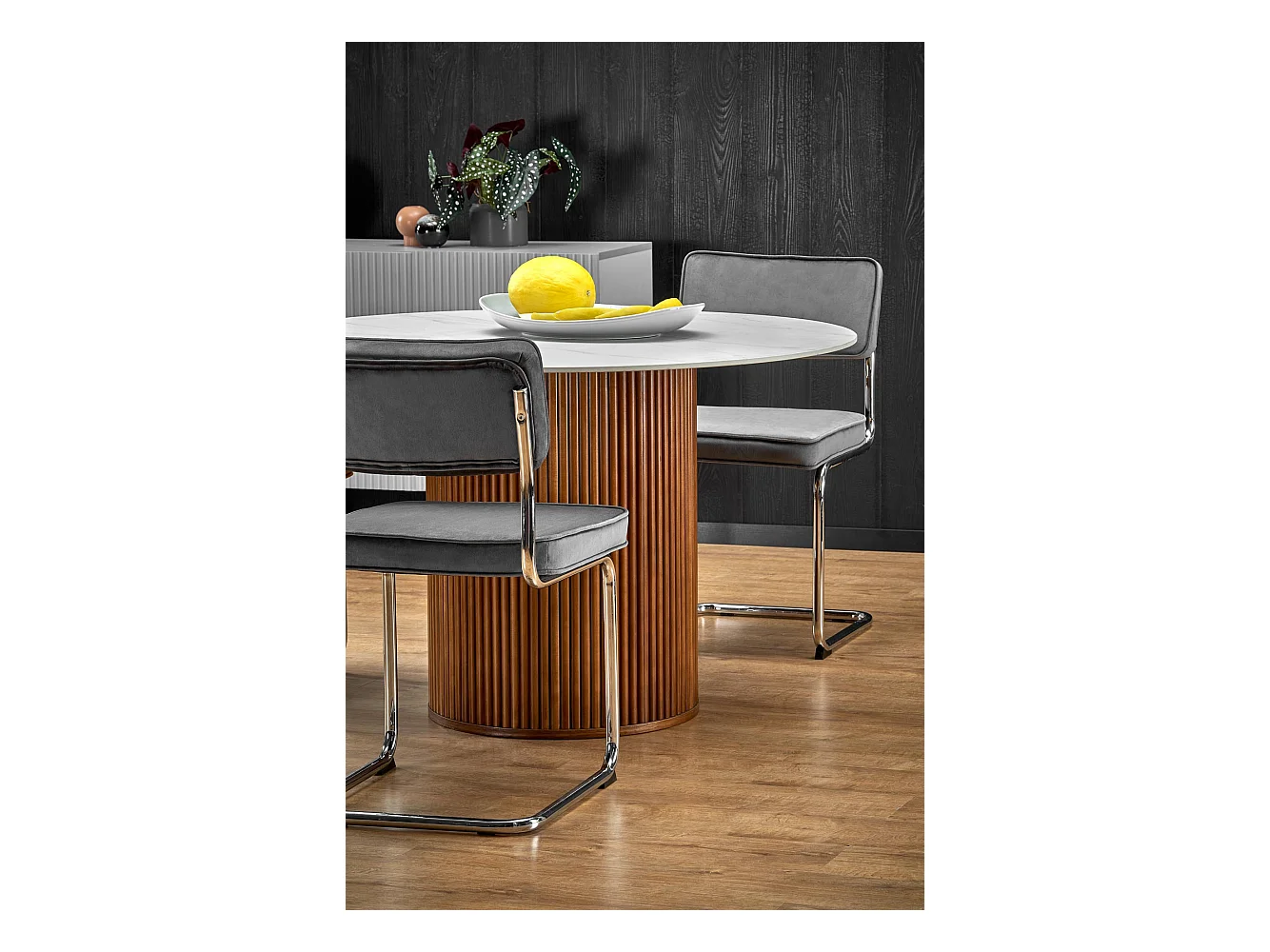 Mesa de comedor redonda de diseño Loco 120 cm en madera y mármol