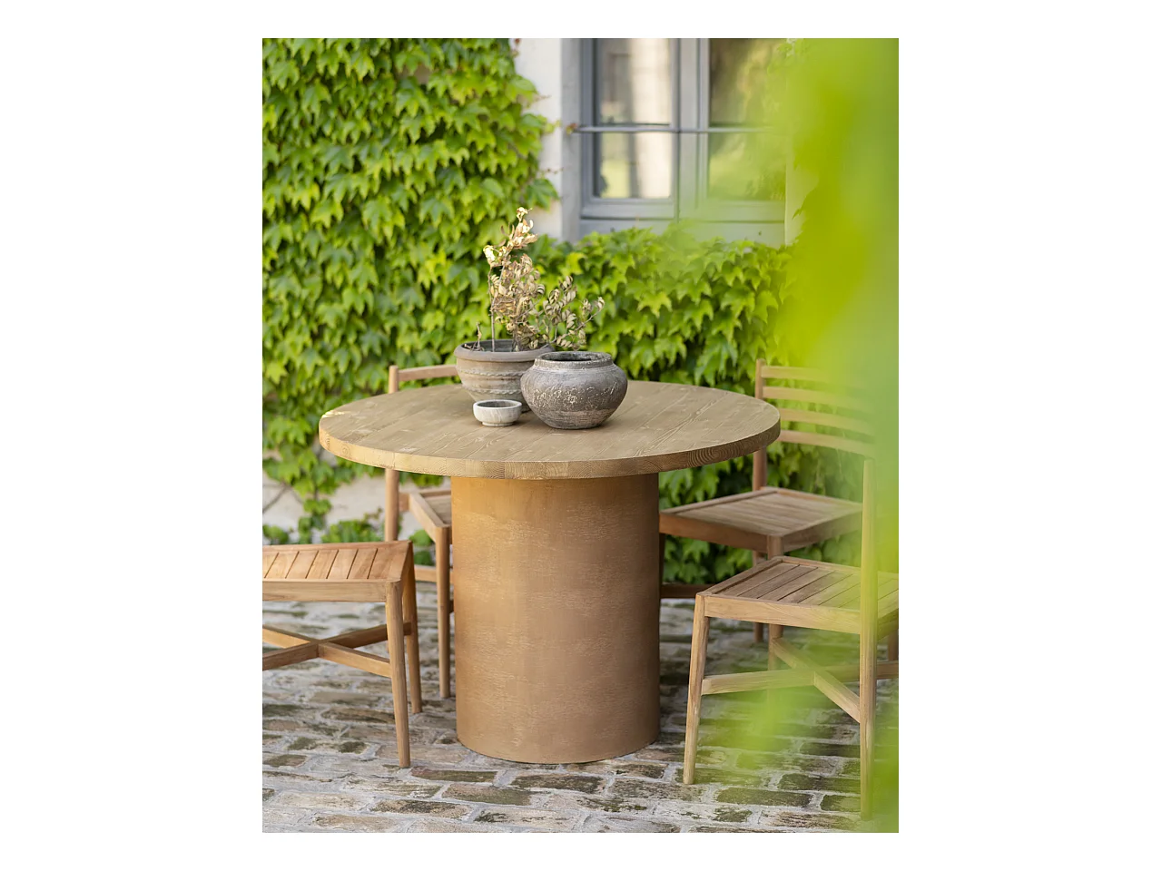 Mesa de comedor redonda de microcemento en tono terracota DECOWOOD de Ø120x75cm - LUCÍA - DECOWOOD
