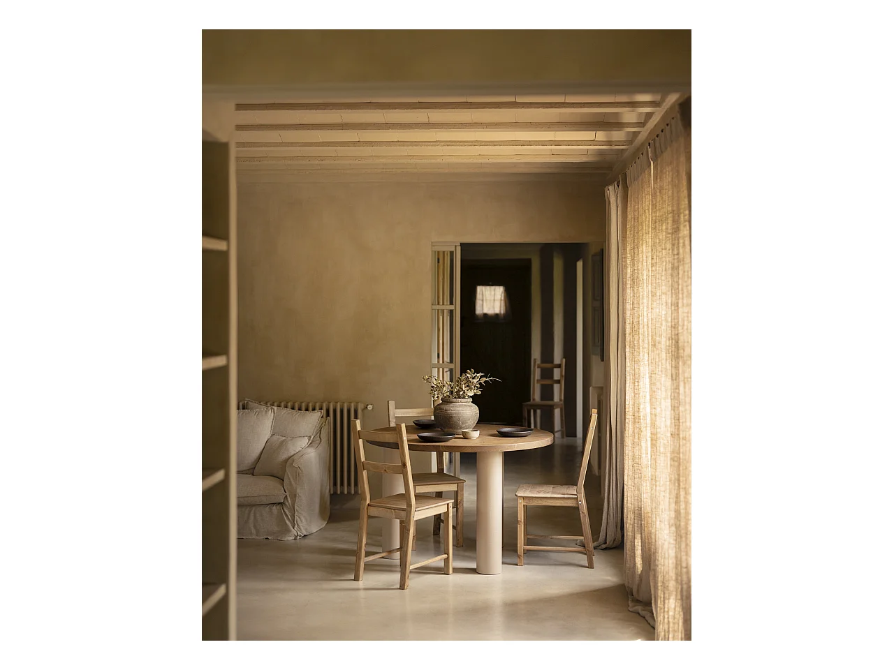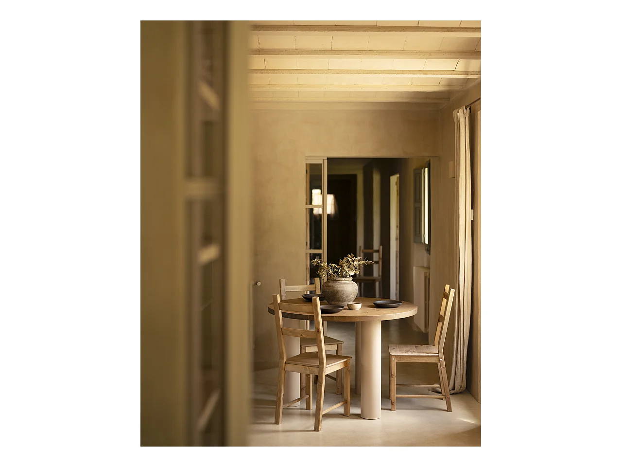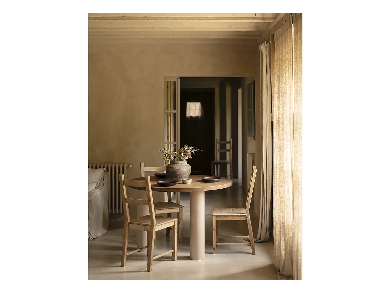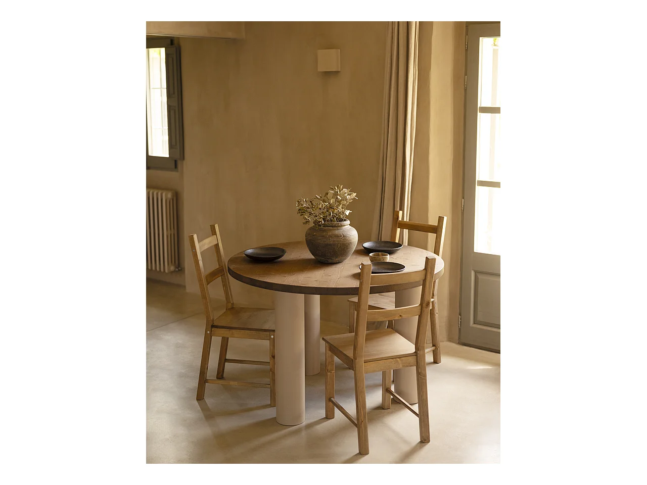 Mesa redonda de madera de olmo 4 personas - Gaston