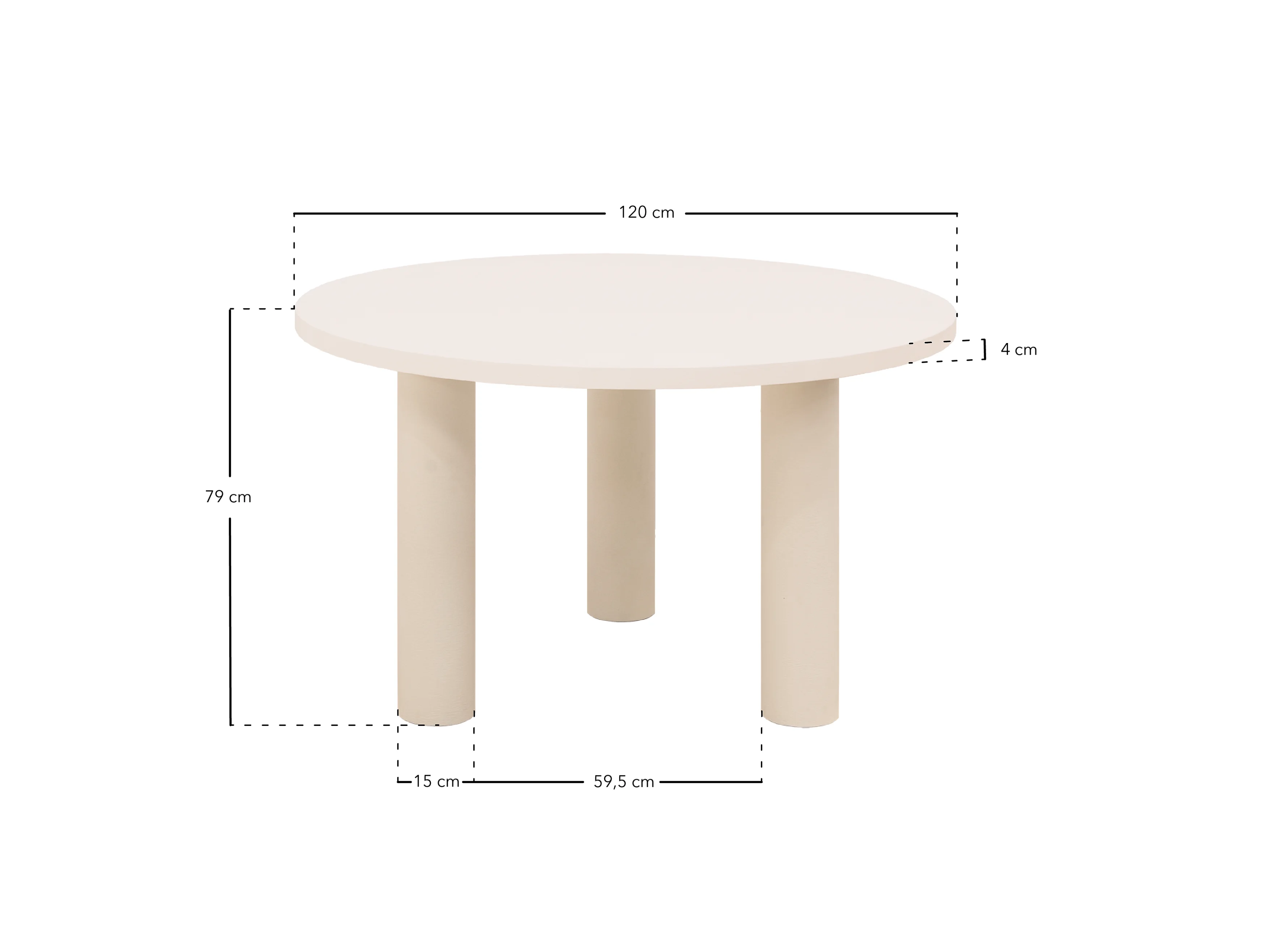 Mesa de comedor redonda de madera maciza tono roble oscuro y patas de microcemento en tono tierra DECOWOOD de Ø120x75cm - LUCÍA - DECOWOOD