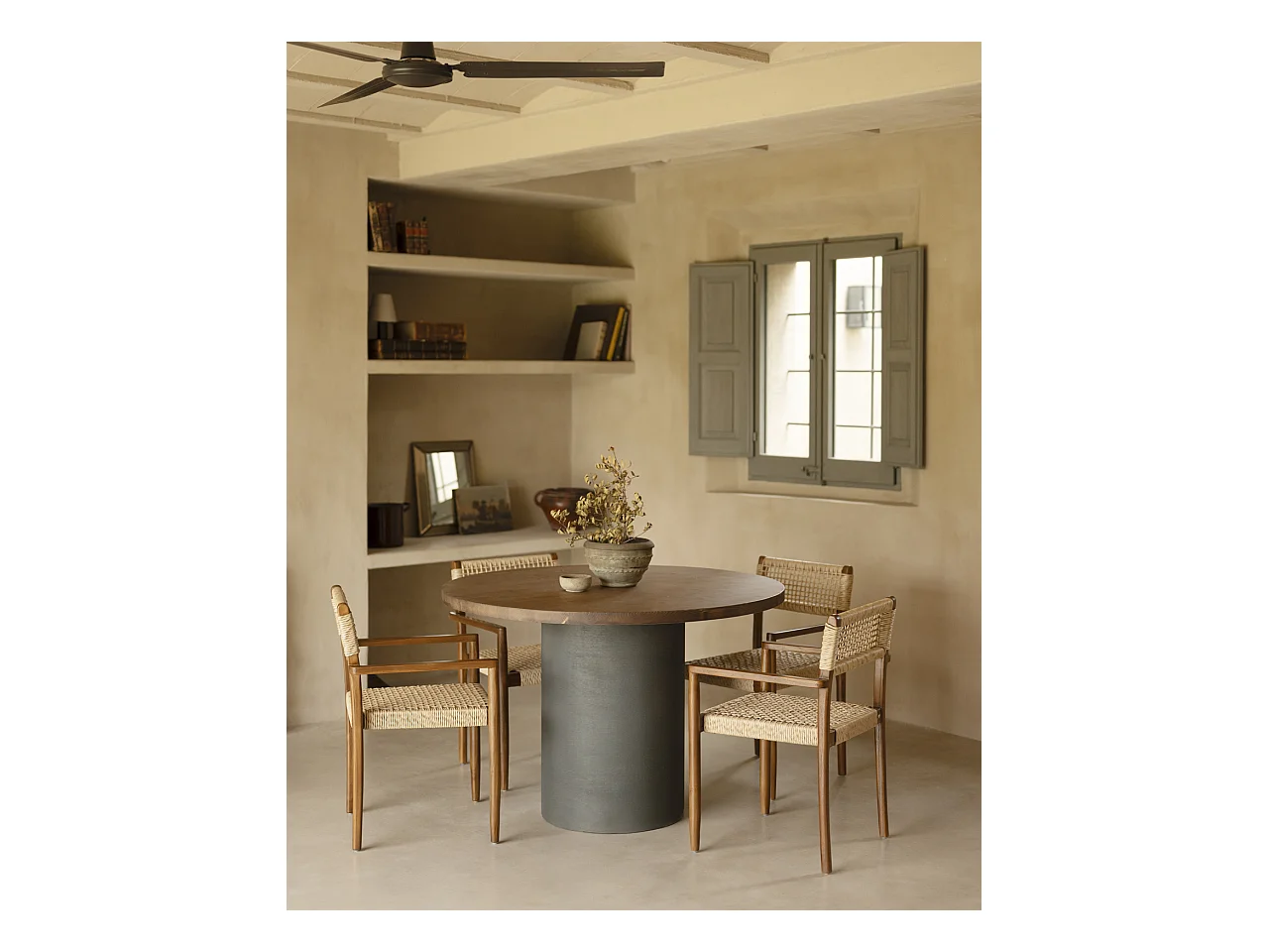 Mesa de comedor redonda de microcemento en tono terracota DECOWOOD de Ø100x75cm - LUCÍA - DECOWOOD