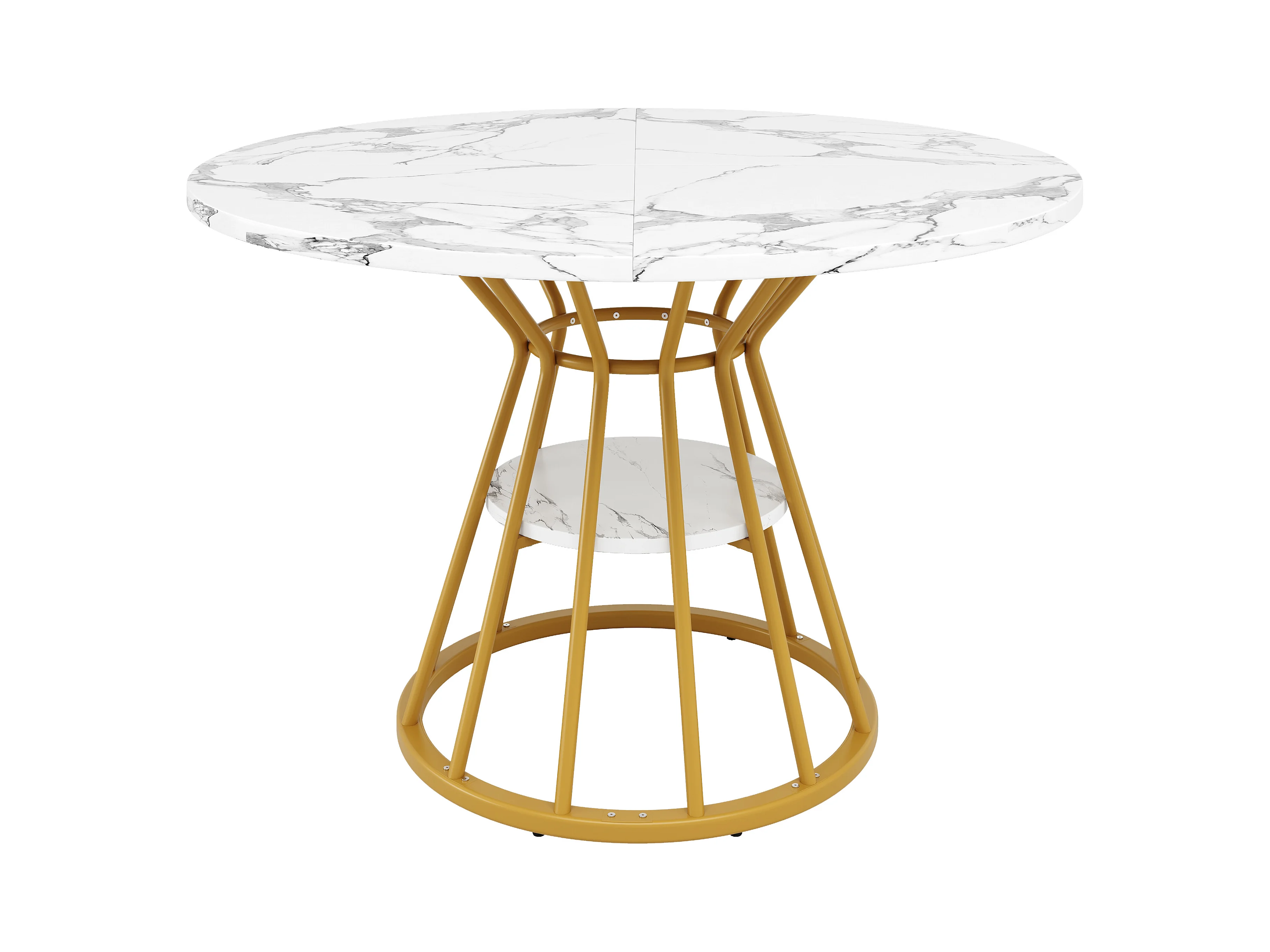 Mesa de comedor redonda - 100 x 100 x 76 cm - con almacenaje - diseño mármol - MDF + Metal - dorado