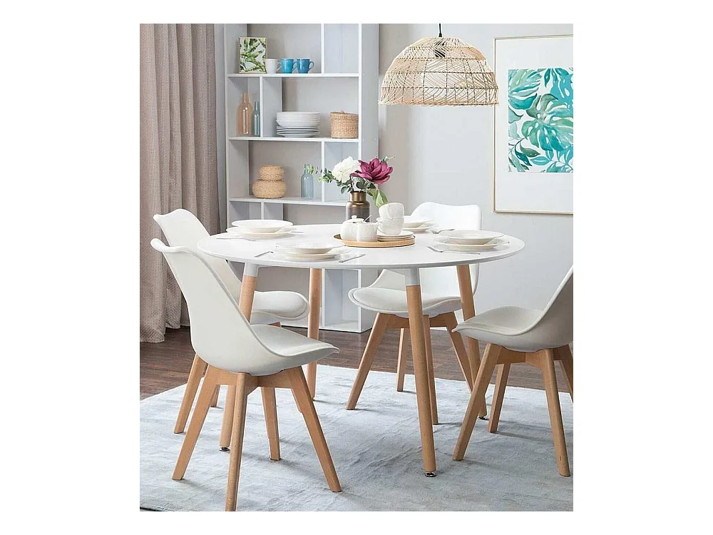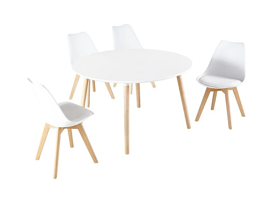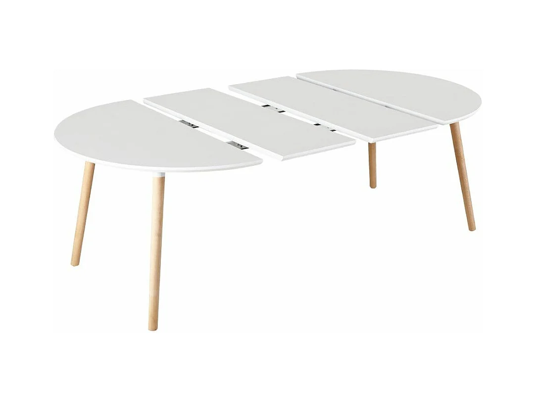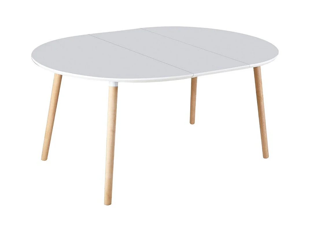 Mesa de comedor redonda extensible de 75x100-140-180x100 cm en color blanco Nórdica