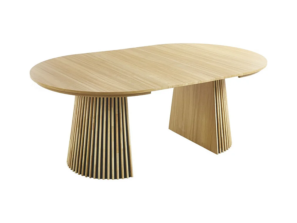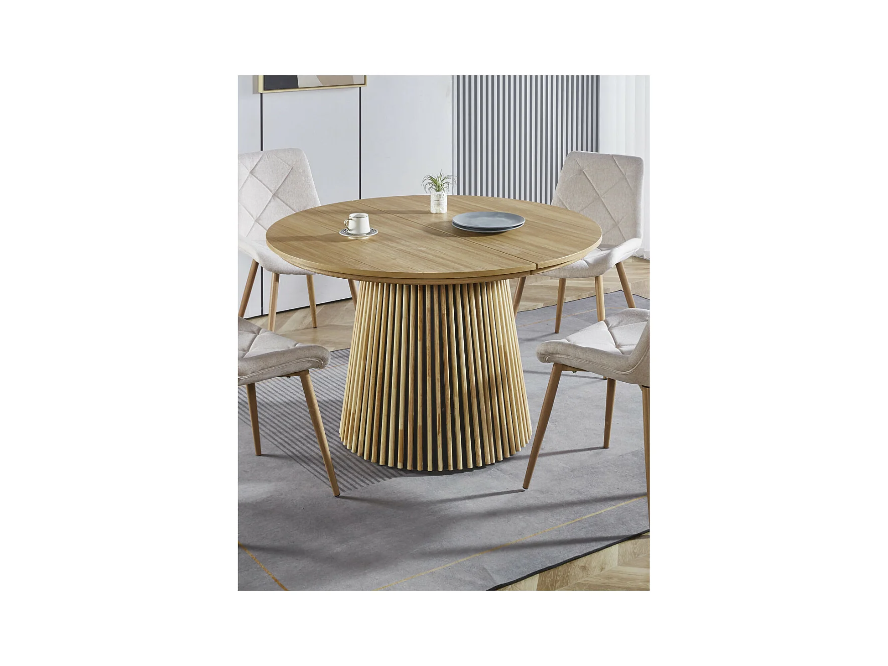 Mesa de comedor redonda extensible de 75x120x120-160-200 cm en color roble Kena