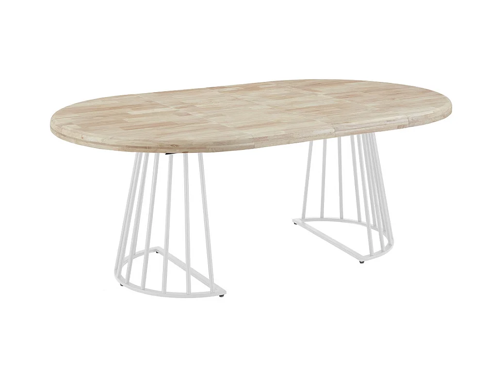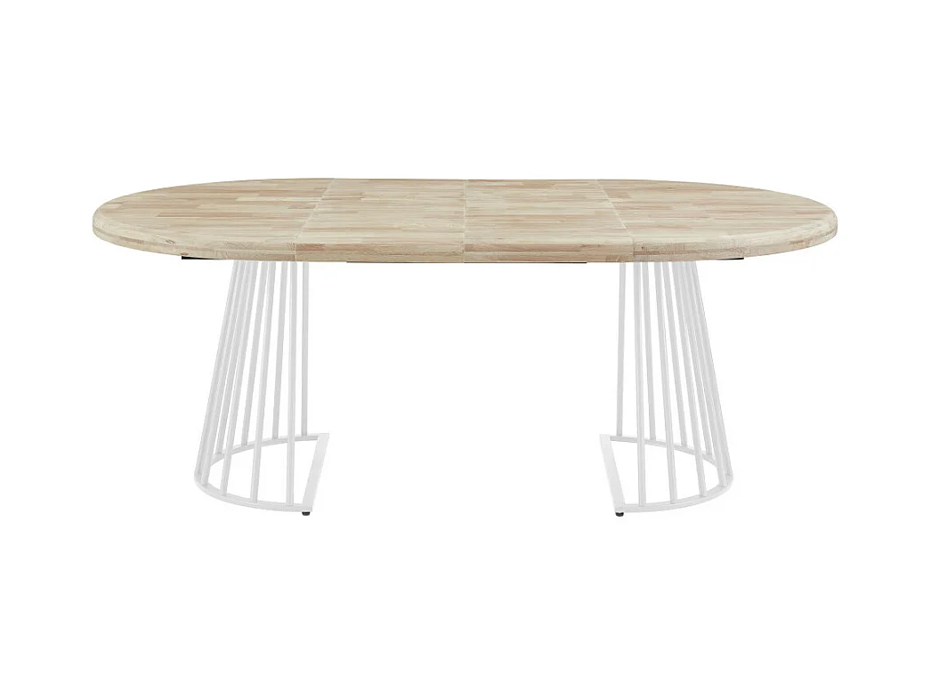 Mesa de comedor redonda extensible de 76x120x120-200 cm de madera y patas blancas Jail