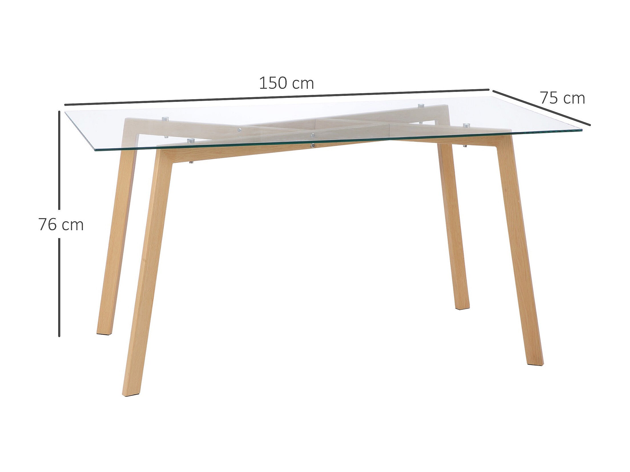Mesa de comedor Rubí Homcom 6 personas cristal natural 76x150x75 cm