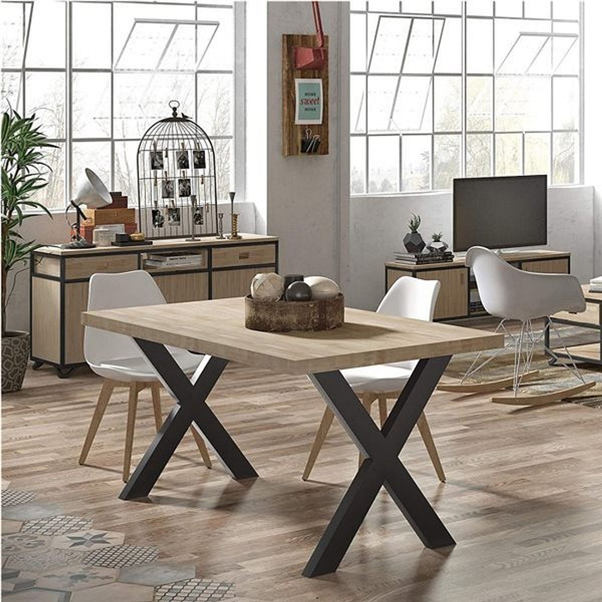 Mesa de comedor Xena patas cruzadas tapa regular roble Nordish/negro 76x160x100 cm Adec