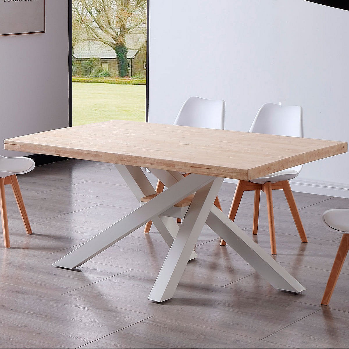 Mesa de comedor Xena patas cruzadas tapa regular roble Nordish/blanco 76x160x100 cm Adec