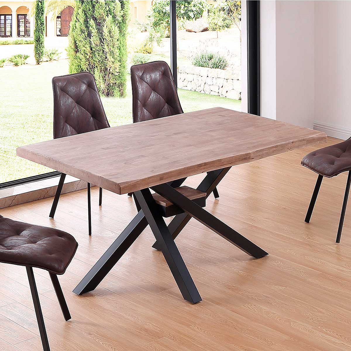 La mesa de comedor Xena es todo lo que necesitas para renovar la apariencia de tu comedor. Su tapa de madera de roble de 54 mm de espesor ofrece una sensación de solidez y calidad excepcionales. Además, su forma rectangular irregular le añade un toque de originalidad y estilo a tu espacio, convirtiéndola en toda una pieza llena de detalles. Las patas metálicas cruzadas en la zona central, con un acabado epoxi mate, complementan a la perfección el diseño de la mesa. Su estructura resistente proporciona estabilidad y durabilidad, asegurando que la mesa Xena sea un mueble que disfrutarás durante muchos años. La madera utilizada en la mesa Xena proviene de bosques sostenibles, lo que garantiza una elección responsable y amigable con el medio ambiente. Además, su acabado en roble aporta calidez y belleza natural a tu espacio. Montar la mesa Xena es fácil y rápido, gracias a su diseño inteligente y las instrucciones claras. ¡Podrás disfrutar de tu nueva mesa en poco tiempo! Esta mesa no solo es perfecta para tus comidas familiares, sino que también es polivalente y se adapta a diferentes usos. Puedes utilizarla como escritorio para trabajar o estudiar, como espacio de juego para tus hijos o como punto de encuentro para charlas y reuniones informales. Y cuando llegue el momento de limpiarla, la superficie de la mesa de roble es fácil de mantener y limpiar, lo que te permite disfrutarla sin preocupaciones. ¡Hazte con esta fantástica mesa Xena!