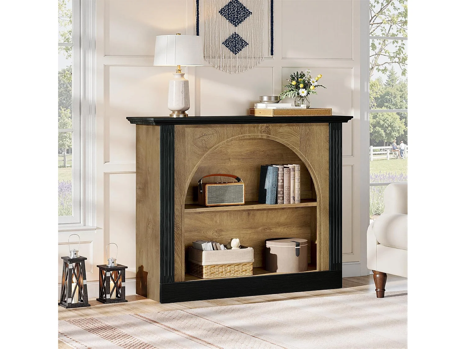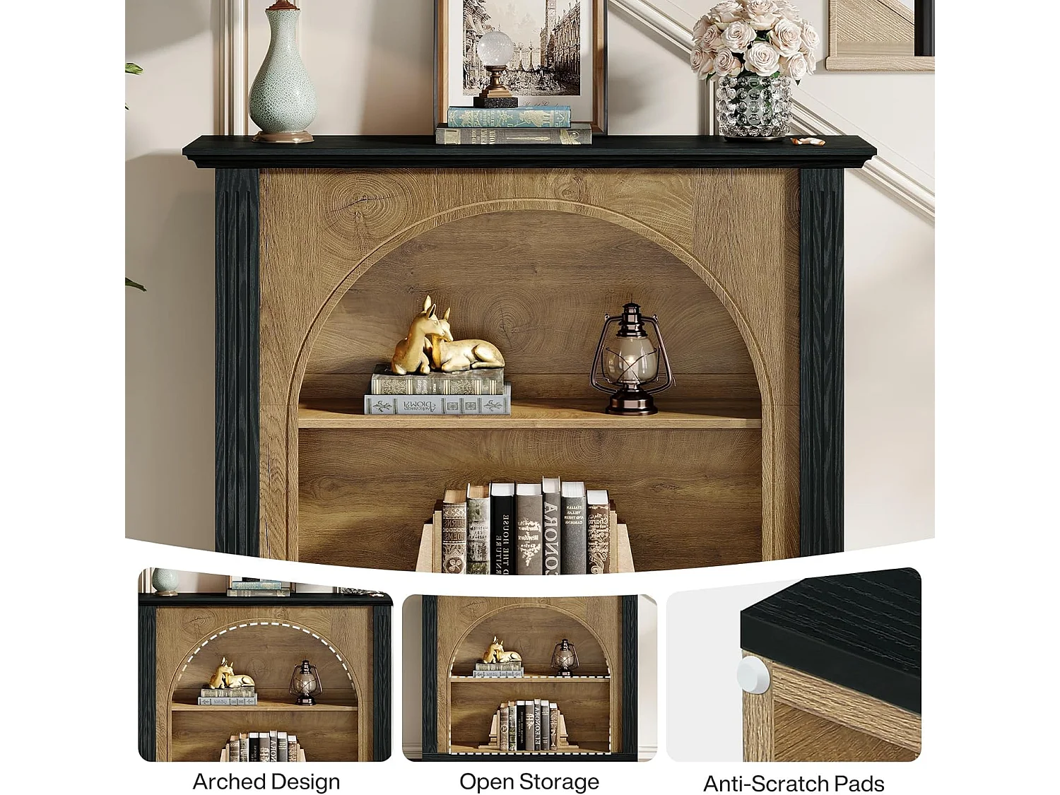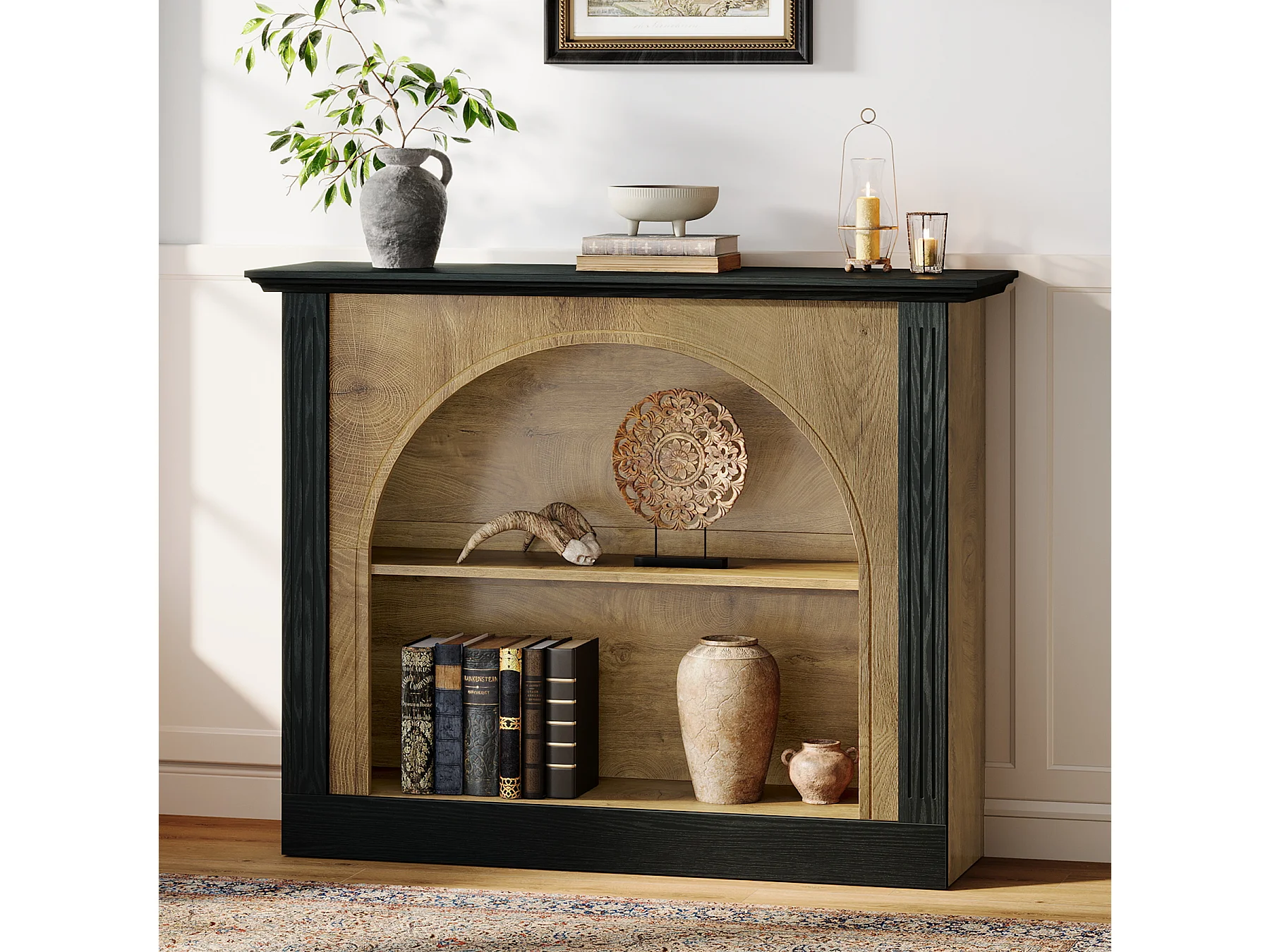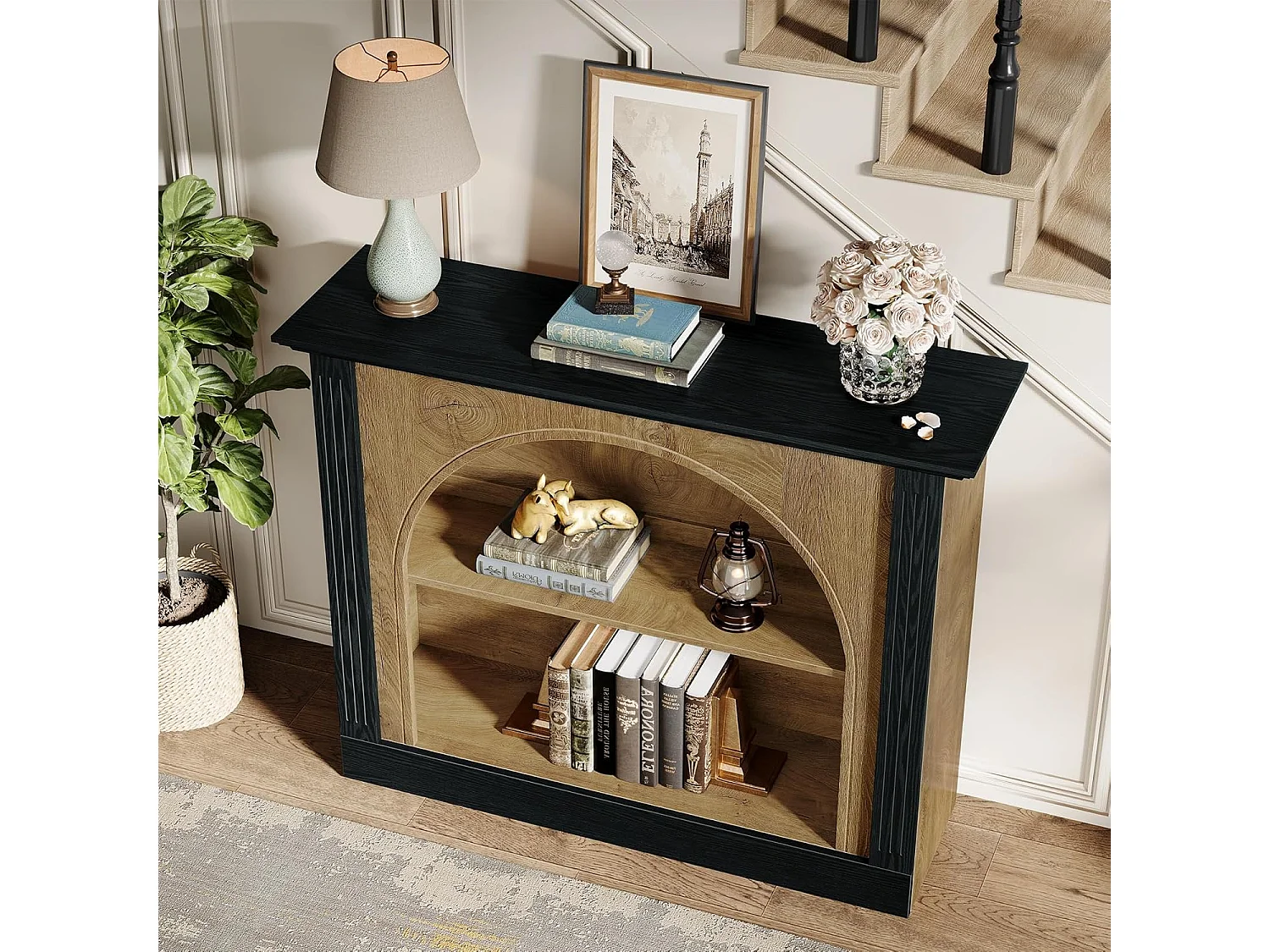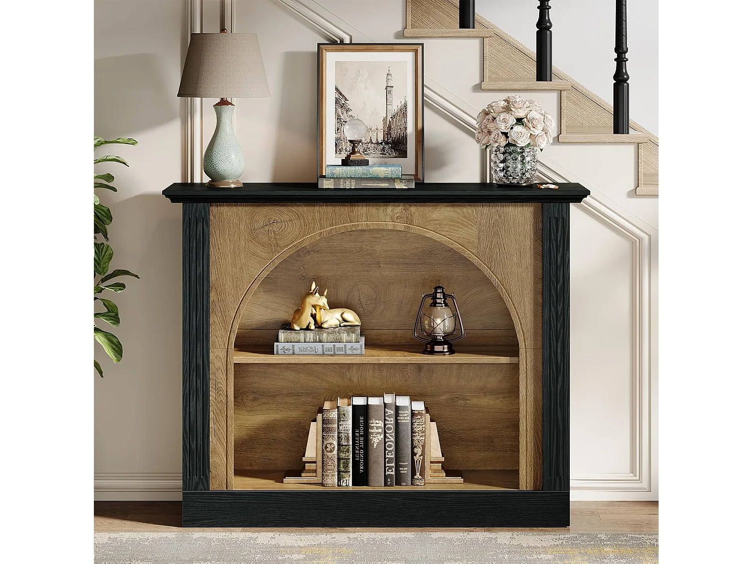 Mesa de consola de 3 niveles, mesa de entrada de 110 cm con almacenamiento para vestíbulo, pasillo