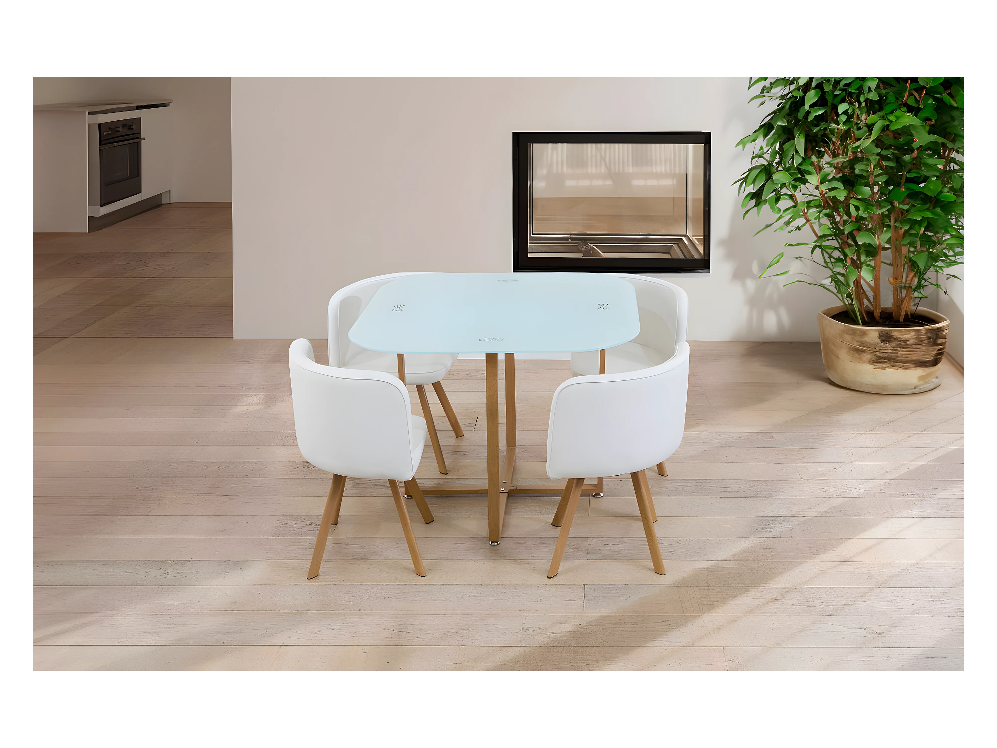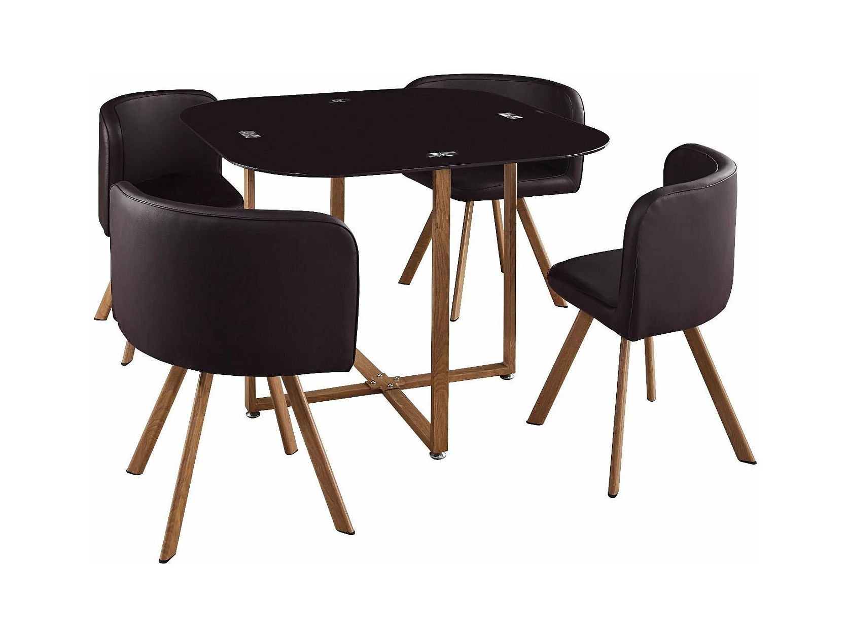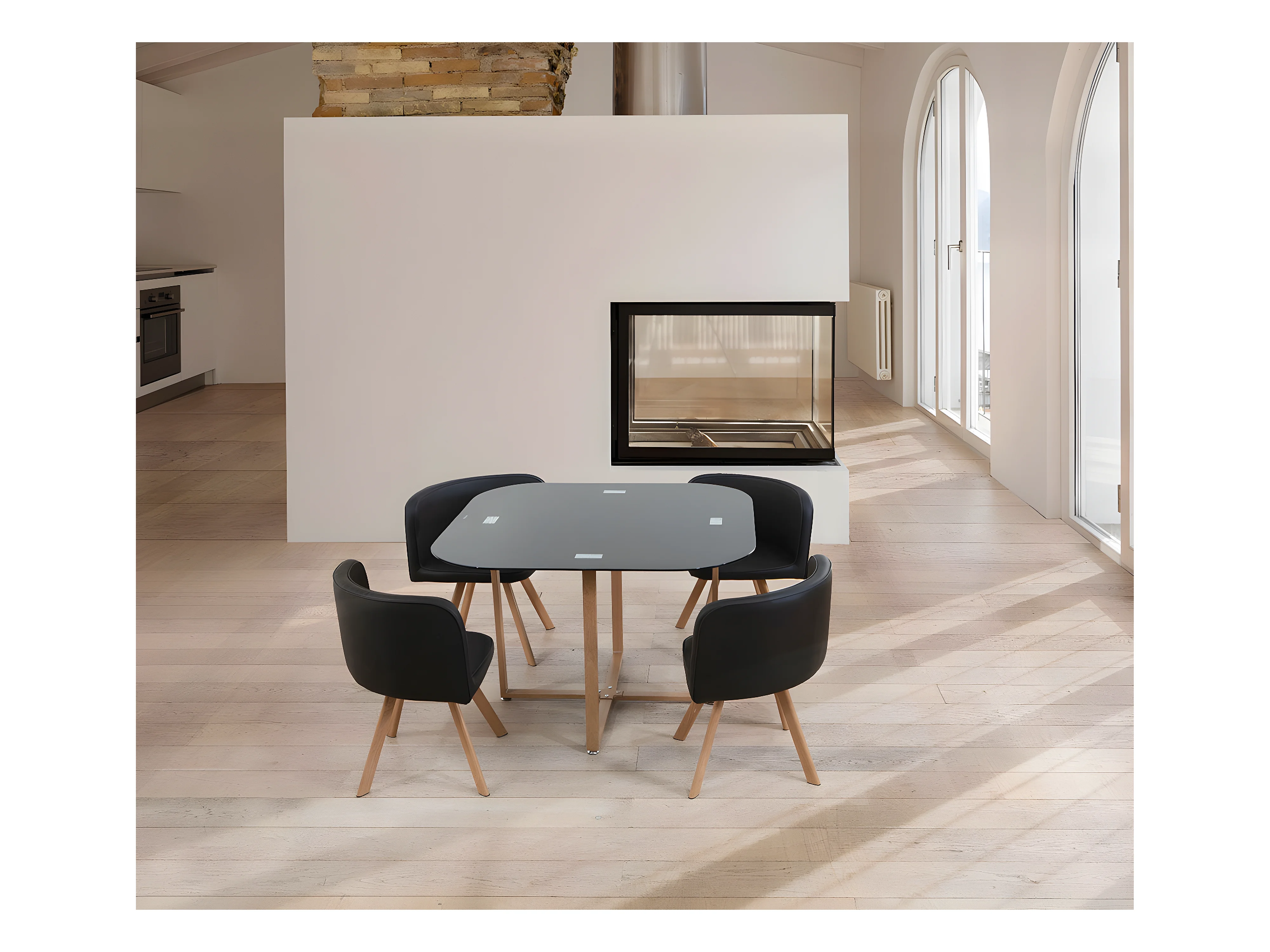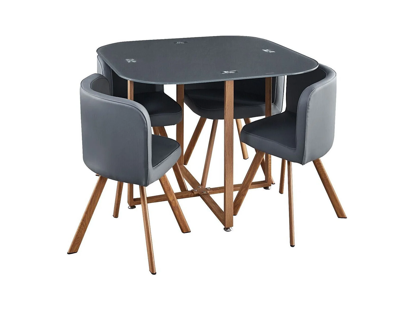 Mesa de Cristal Templado Teka + 4 Sillas. Comedor o Cocina Gris 100x100 cm