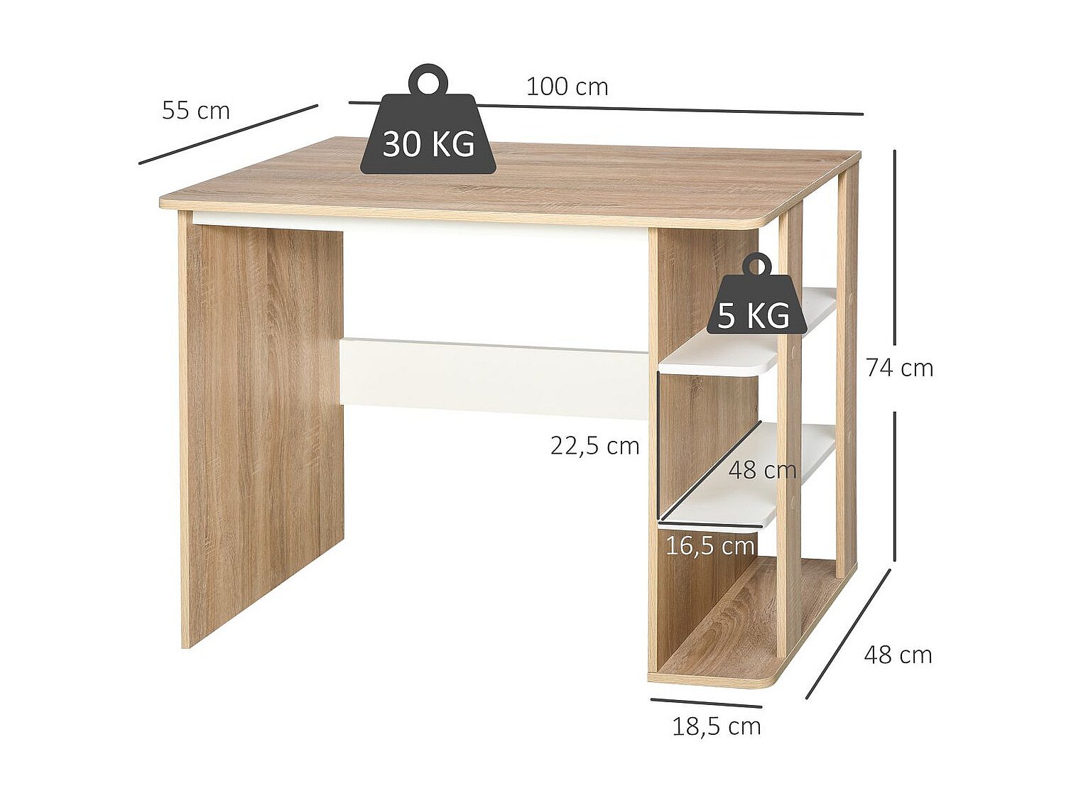 Mesa de escritorio color roble y blanco 100x55x74 cm HOMCOM