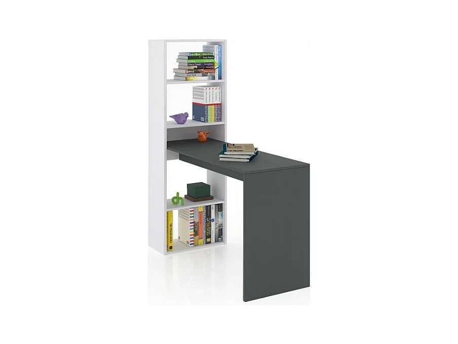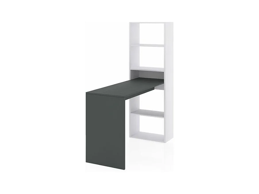 Mesa de escritorio con estantería Cosmic Blanco Artik (Blanco Mate) - Gris Antracita