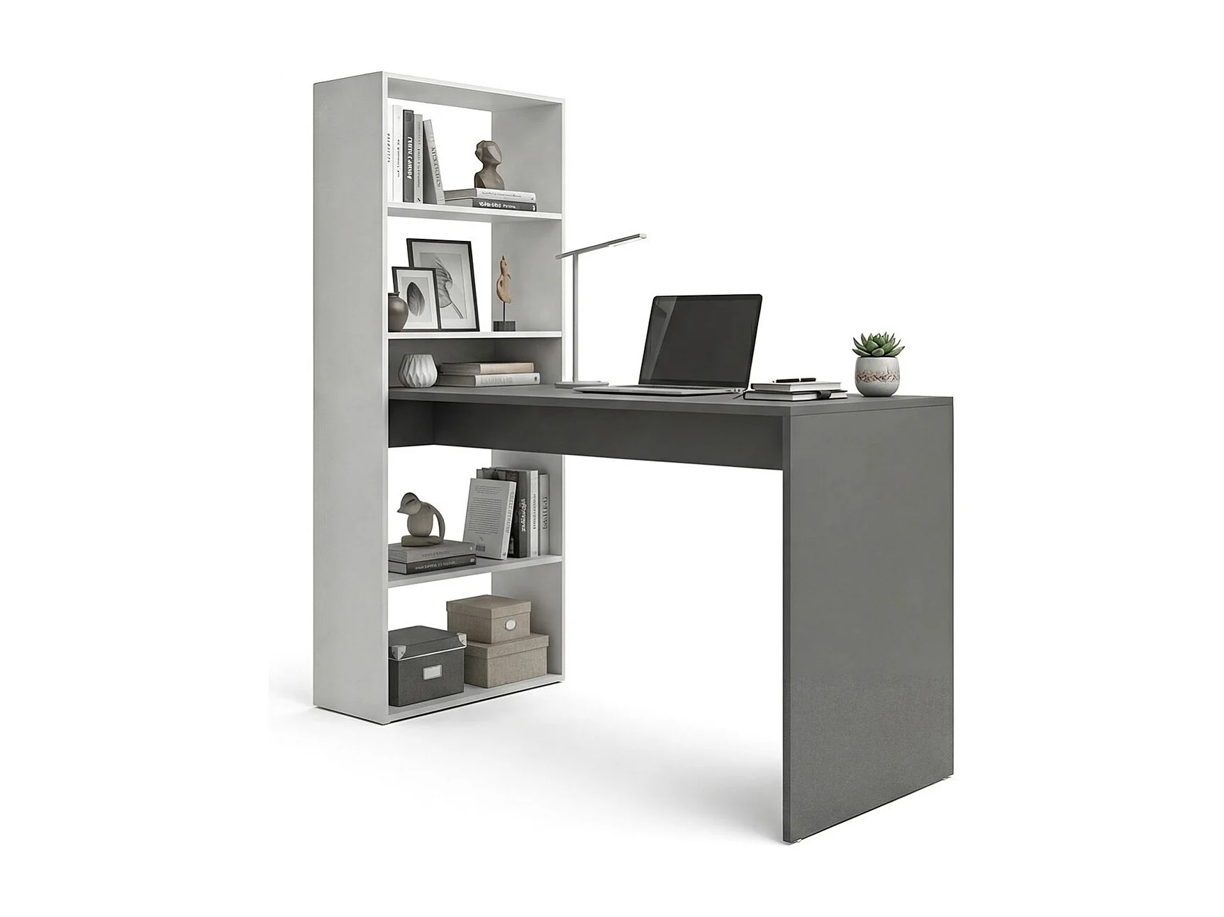 Mesa de escritorio con estantería en blanco artik y gris antracita 120x50 cm Cosmic Blanco Artik (Blanco Mate) - Gris Grafito