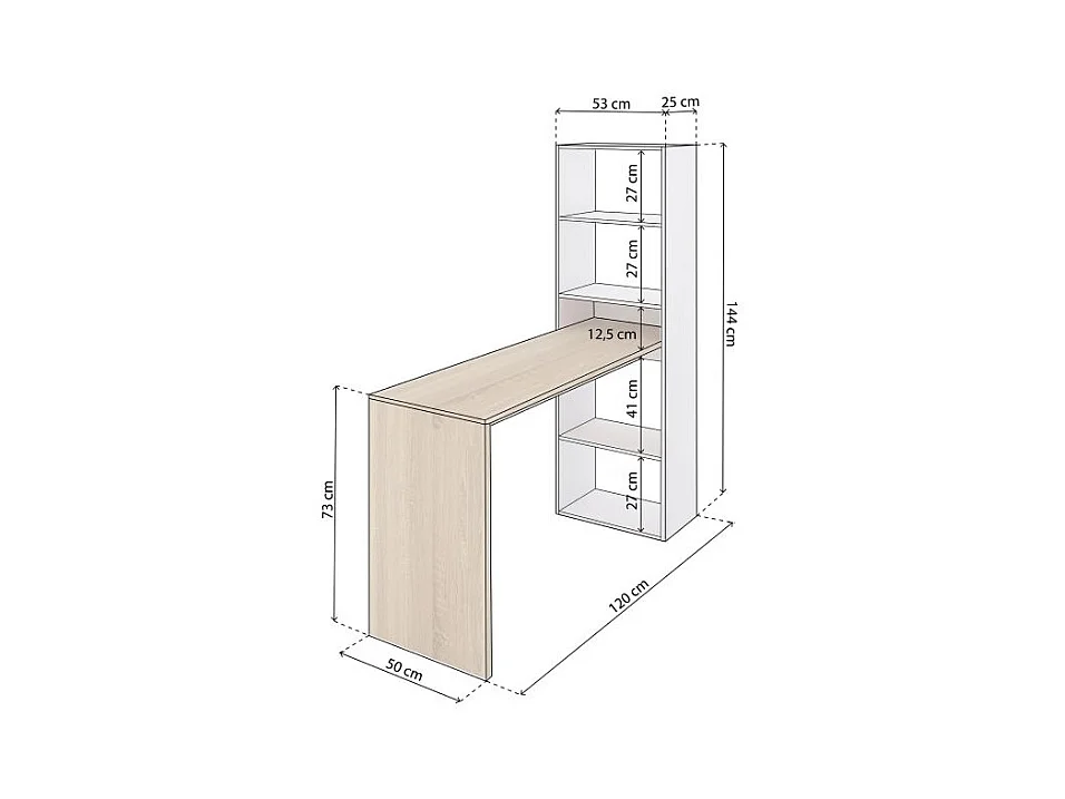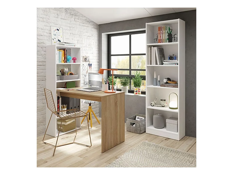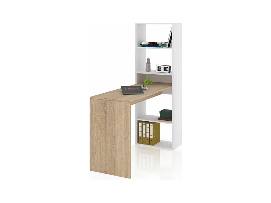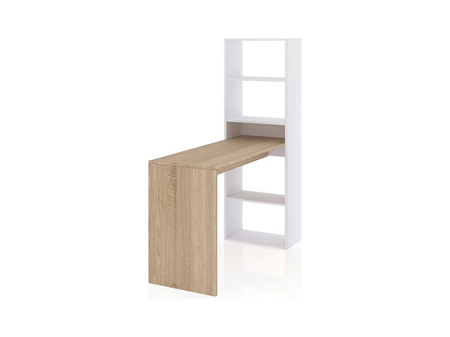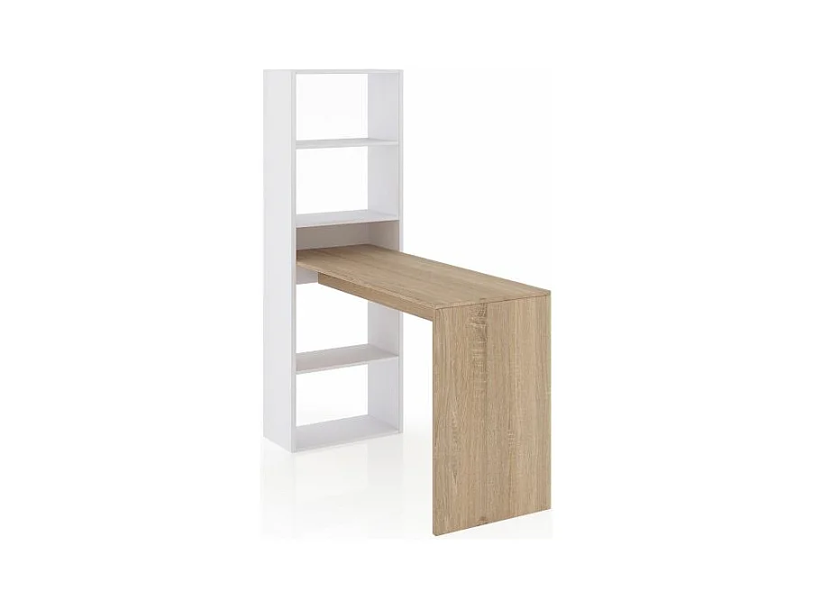 Mesa de escritorio con estantería Cosmic Blanco Artik (Blanco Mate) - Roble Canadian