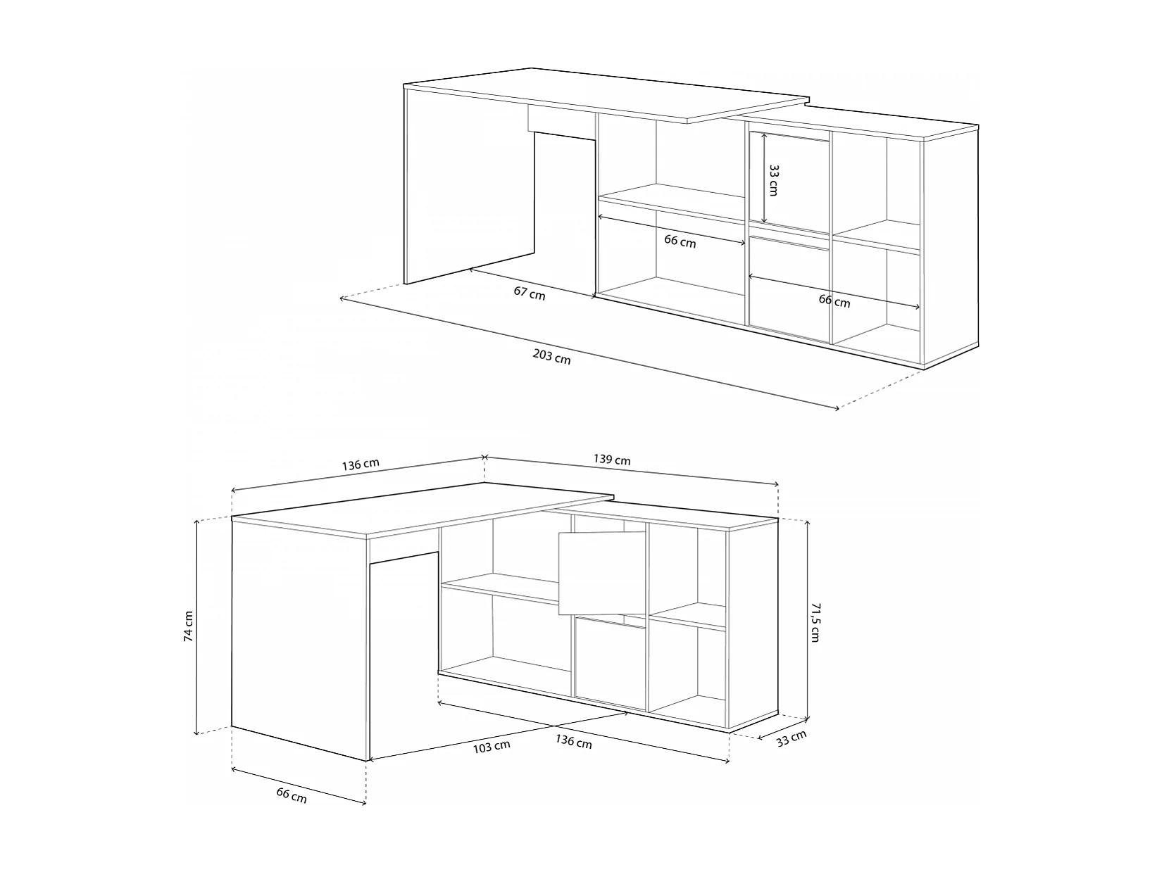 Mesa de escritorio multiposición en blanco mate y gris cemento 136x139 cm Move Blanco Artik (Blanco Mate) - Gris Cemento