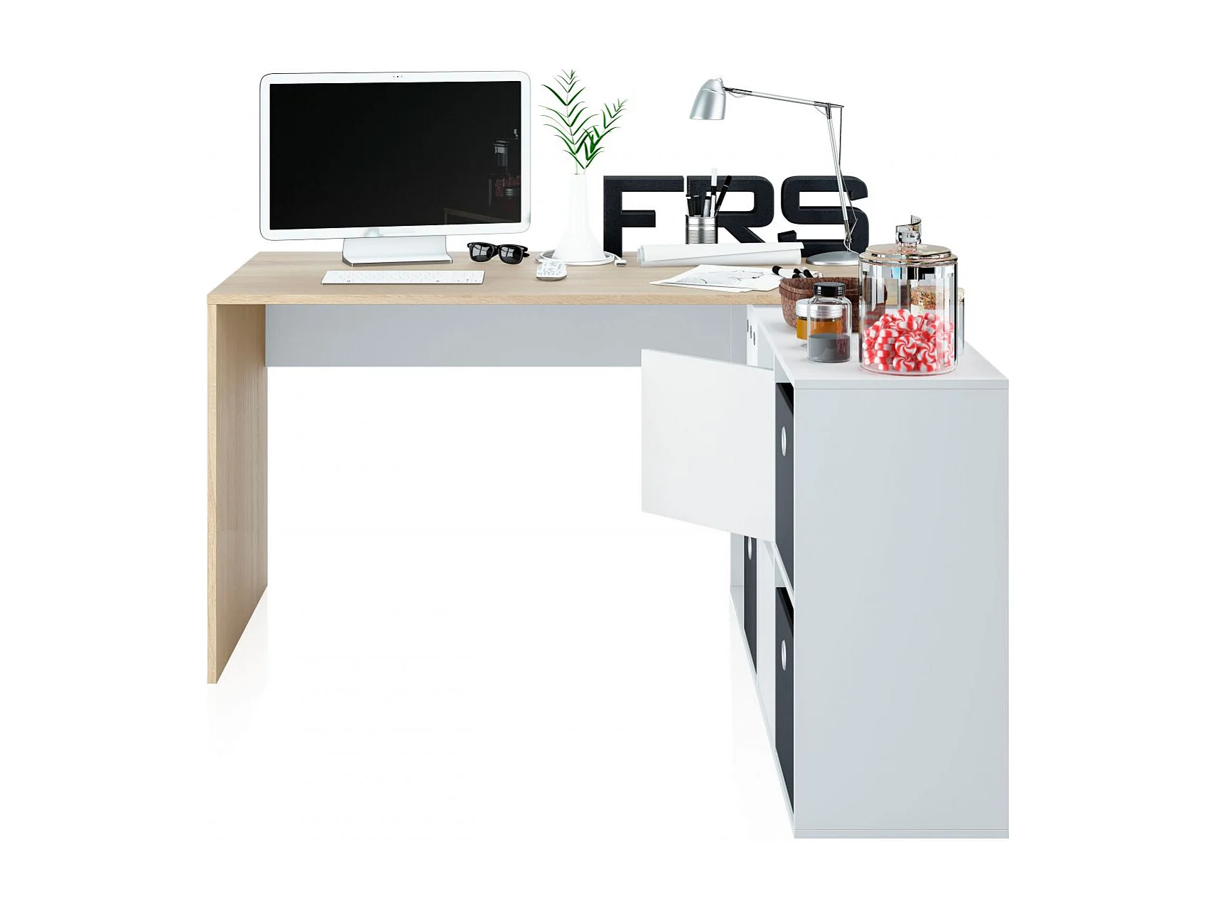 Mesa de escritorio multiposición en blanco mate y roble canadian 136x139 cm Move Blanco Artik (Blanco Mate) - Roble Canadian