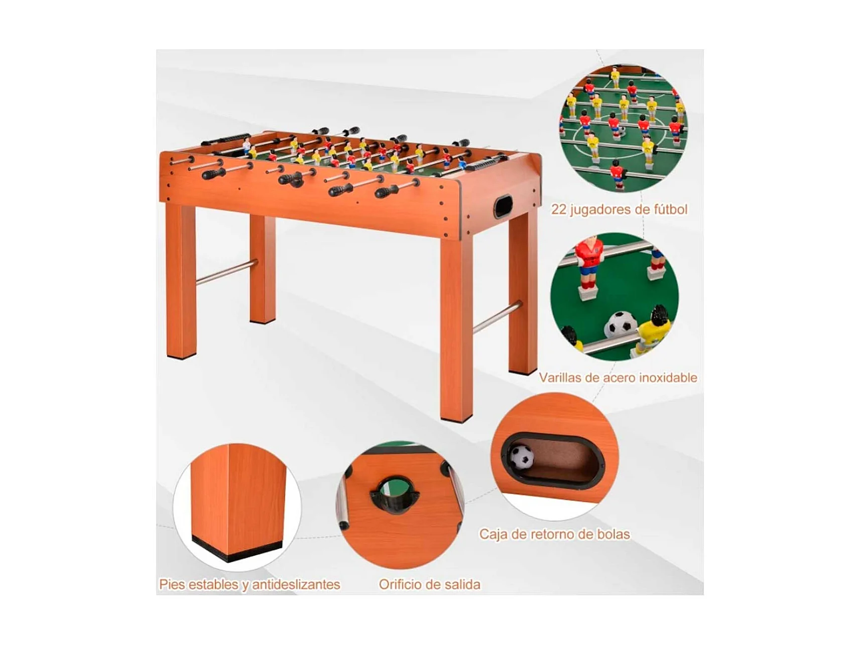 Futbolín de madera madera natural 122x61x80,7cm HOMCOM
