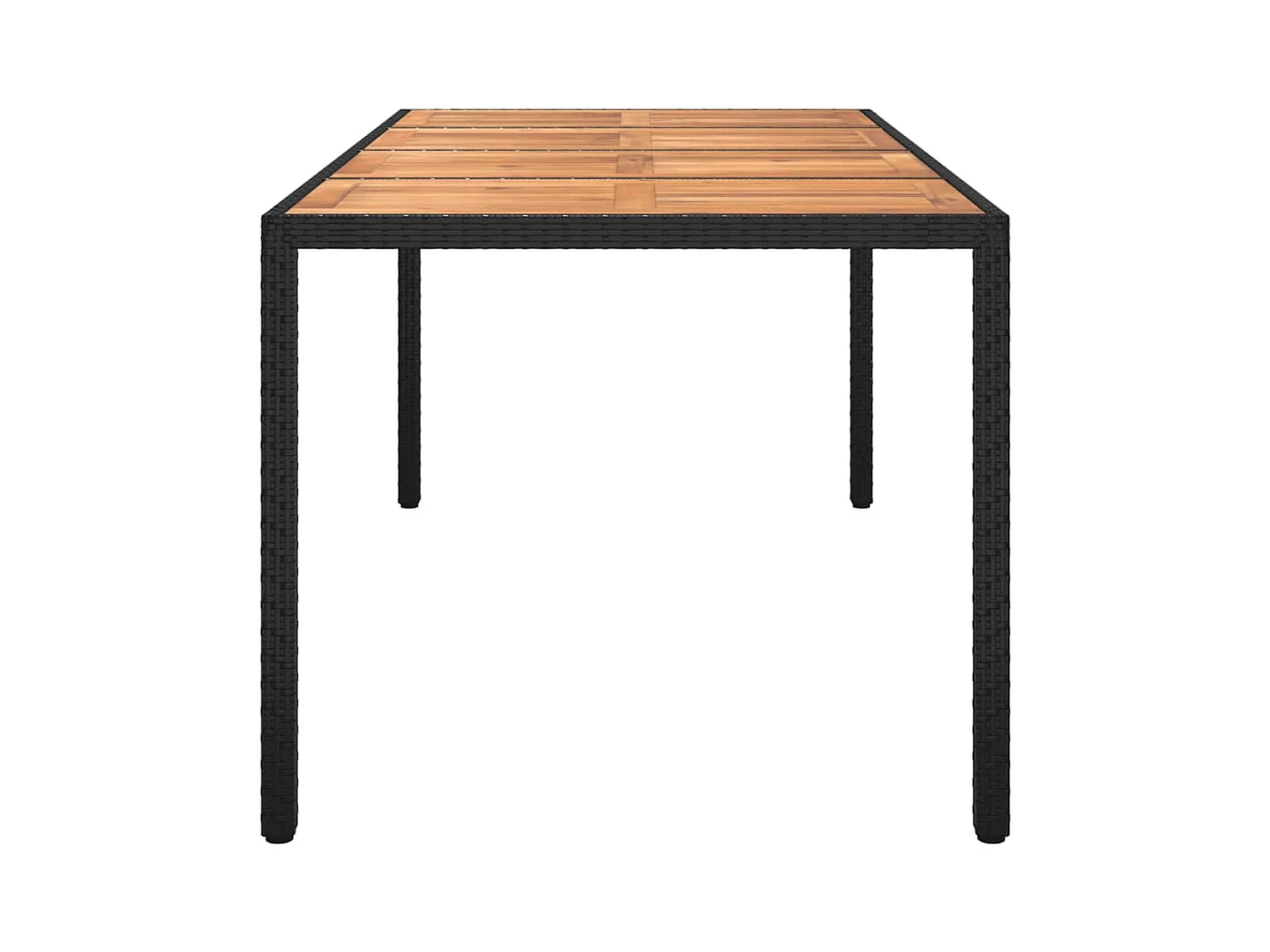 Mesa de jardín 190x90x75 cm Resina mimbre y madera de acacia Negro