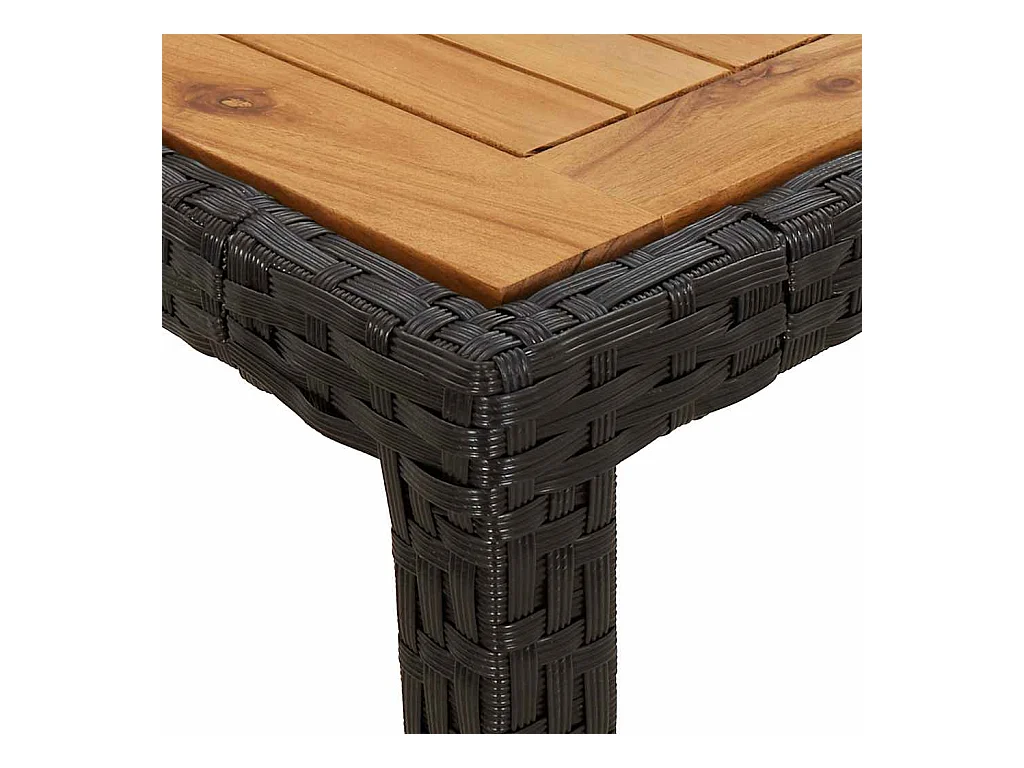Mesa de jardín y tablero en madera de acacia negra y resina trenzada.