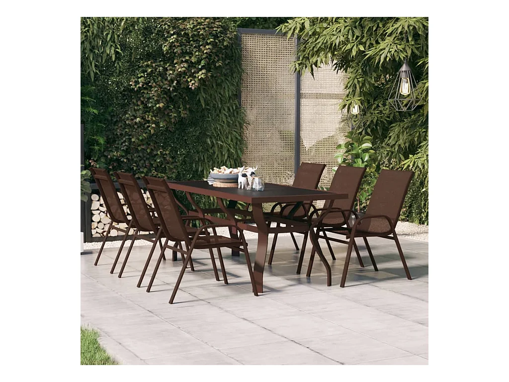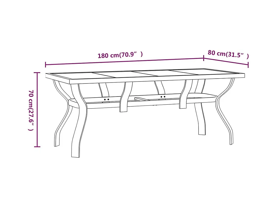 Mesa de jardín acero y vidrio marrón y negro 180x80x70 cm