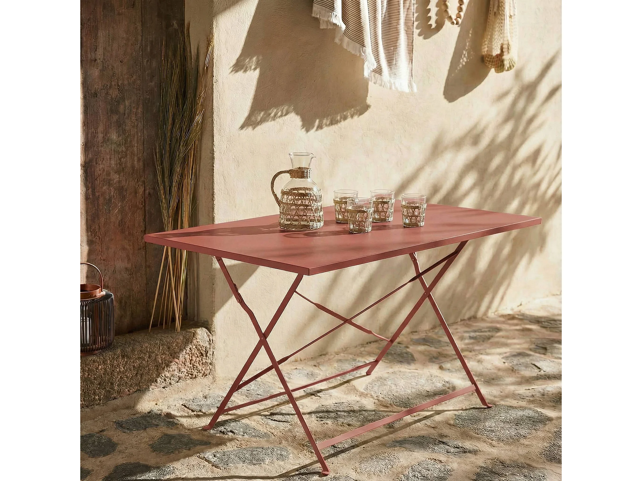 Mesa de jardín metálica de 120cm, 4 plazas terracotta