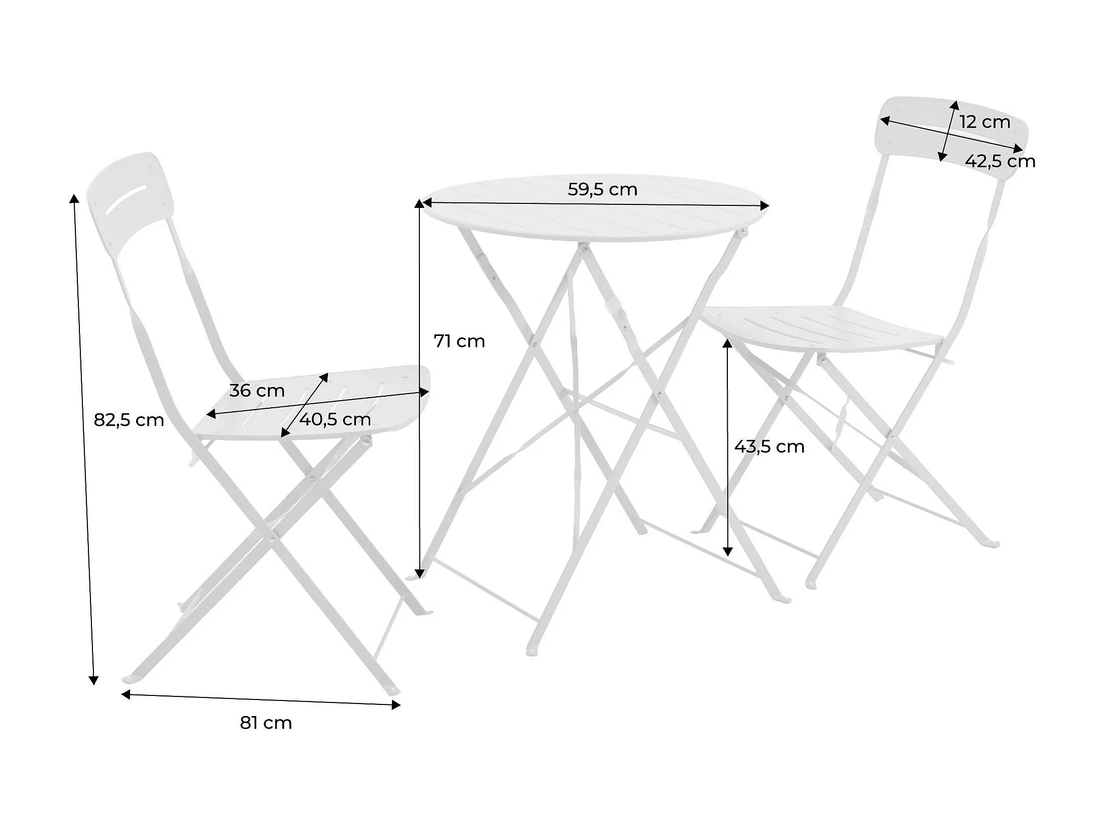 Set de jardín bistró plegable de mesa redonda de acero con 2 sillas