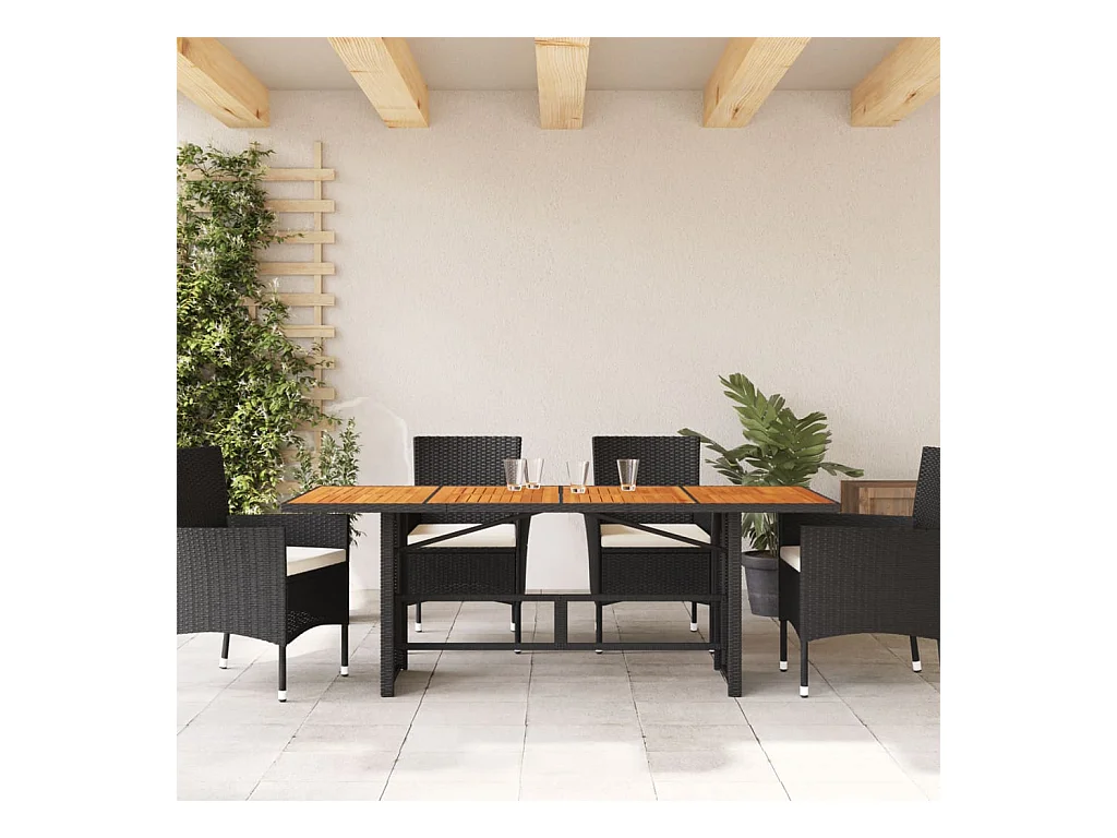 Mesa de jardín y tablero en madera de acacia negra y resina trenzada.