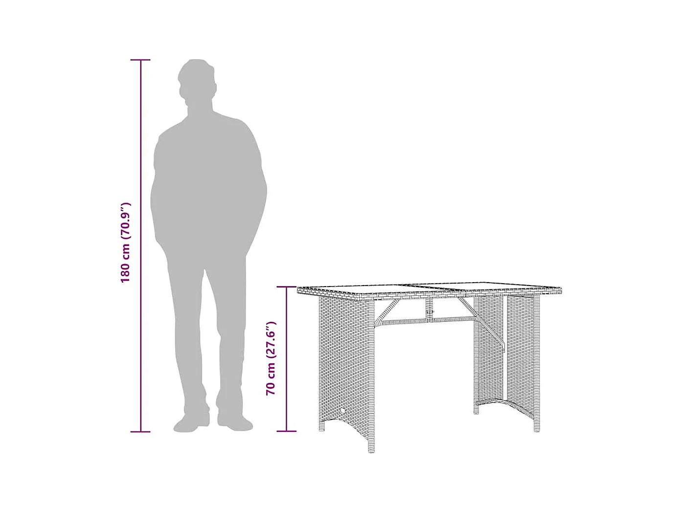 Mesa de jardín con tapa de cristal marrón 110x68x70 cm ratán