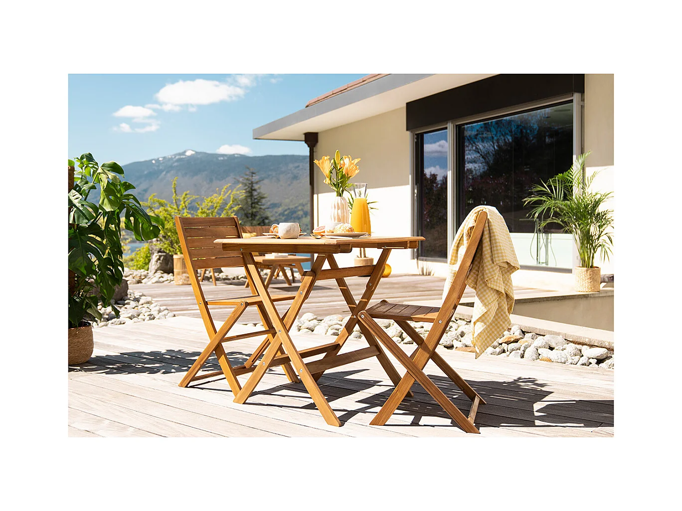 Mesa de jardín cuadrada plegable de madera maciza 140 cm SANTIAGO