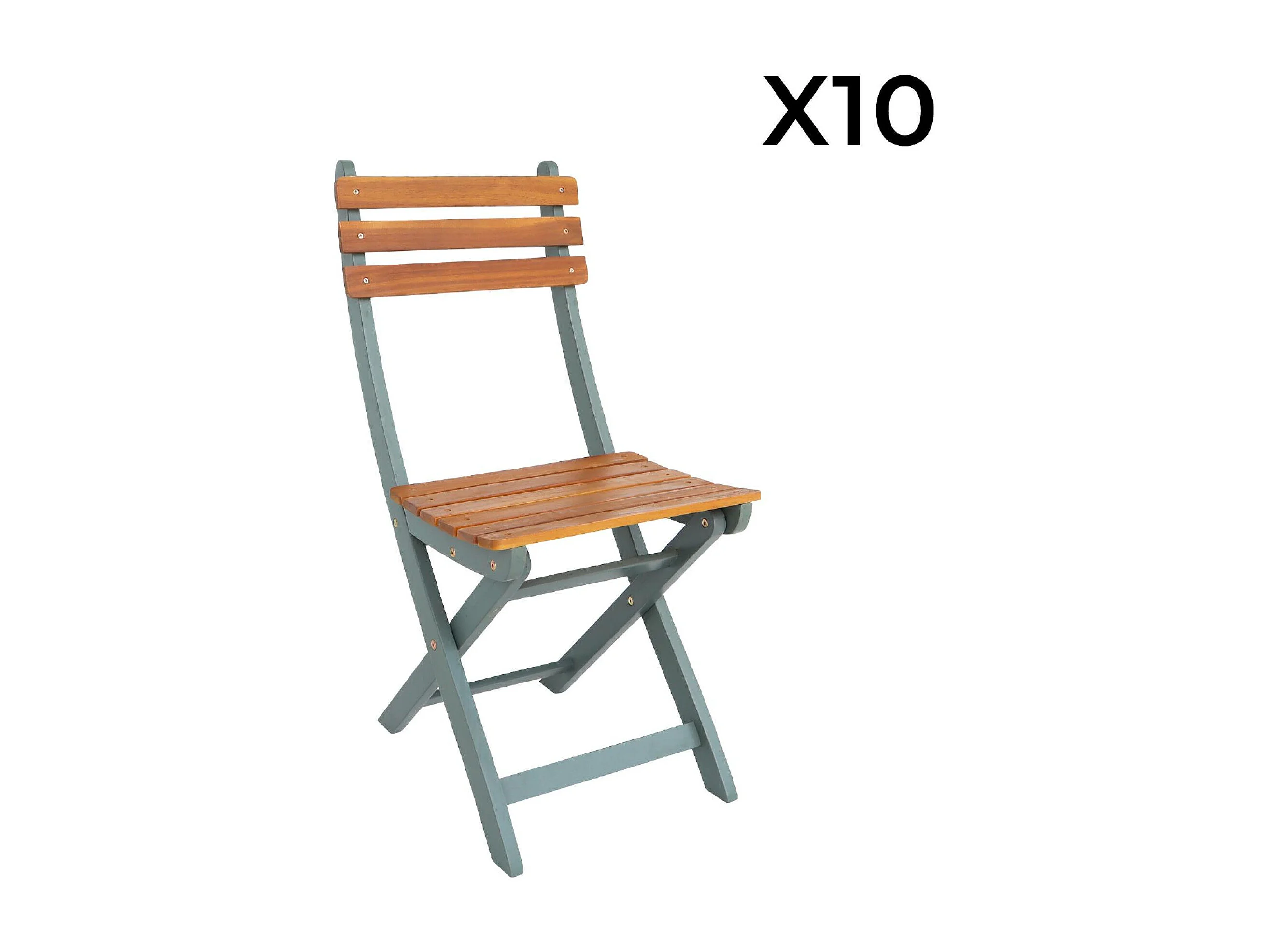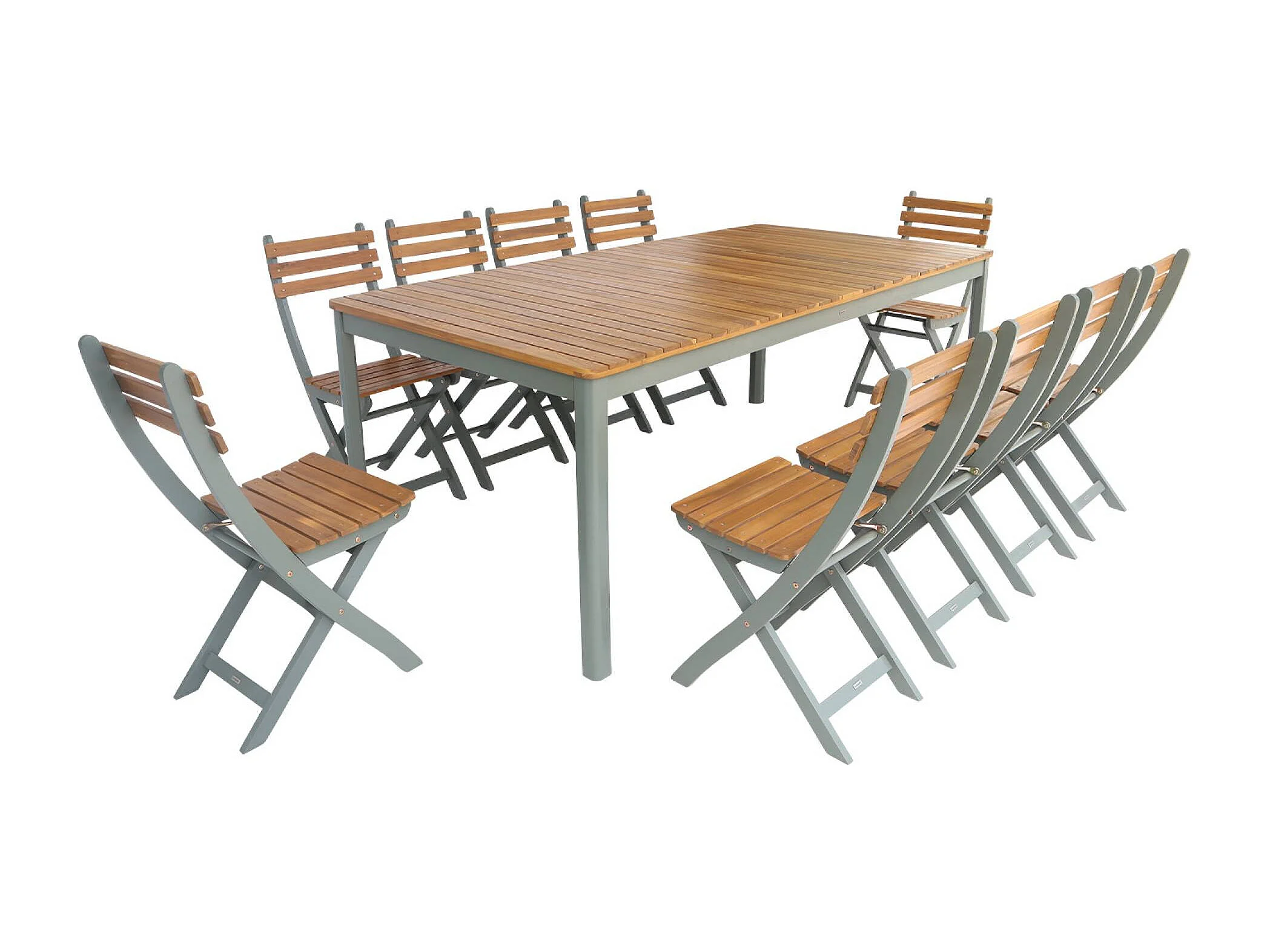 Mesa de jardín de acacia con esquinas redondeadas, 10 sillas verde