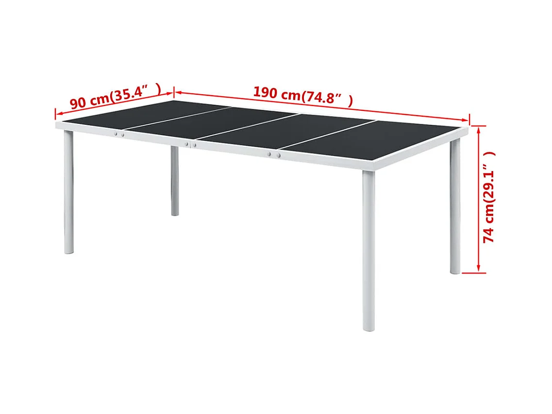Gudleik Mesa de comedor de jardín acero y vidrio negra 190x90x74 cm