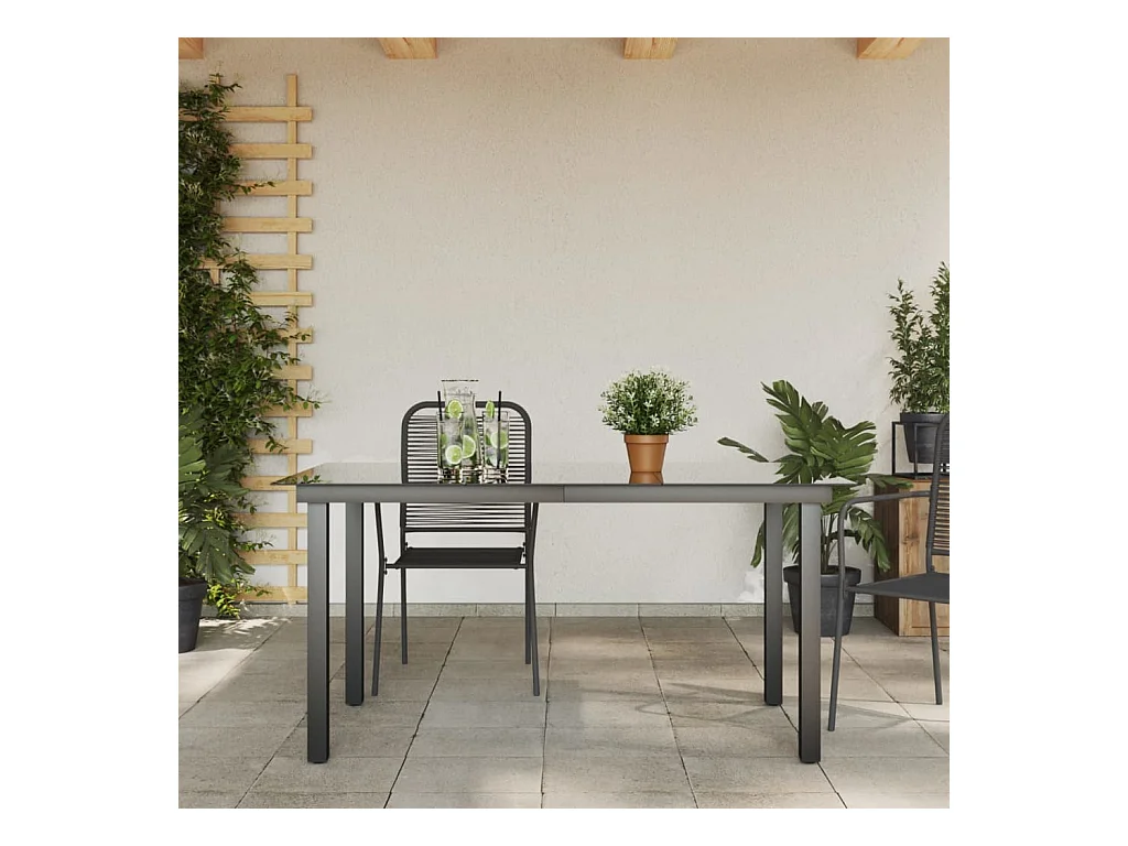 Mesa de comedor de jardín acero y vidrio negra 190x90x74 cm
