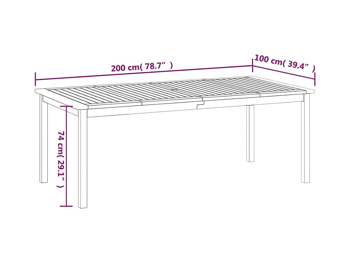 Mesa de jardín de madera maciza de acacia 200x100x74 cm