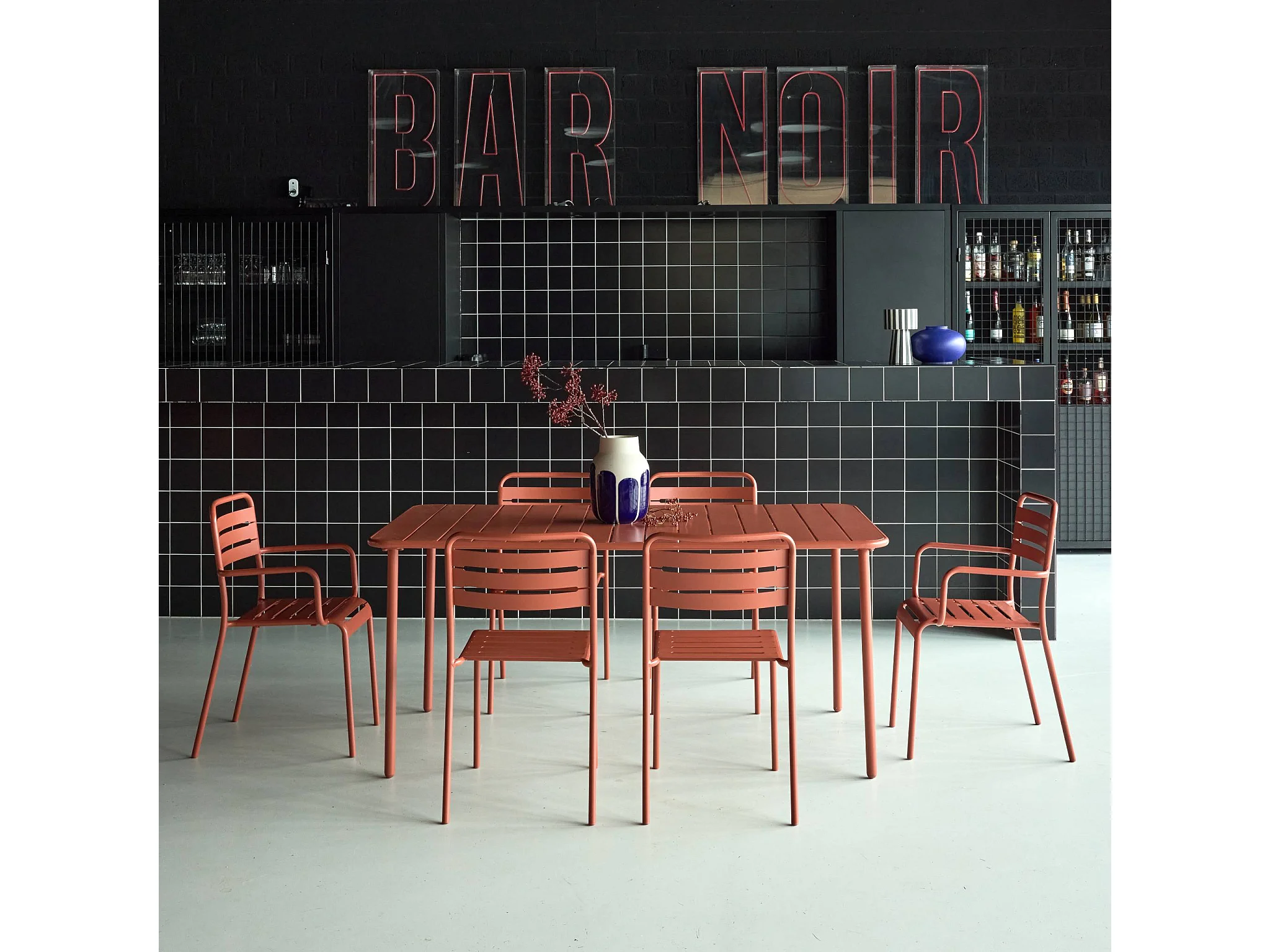 Mesa de jardín de metal 2 sillones 4 sillas terracotta