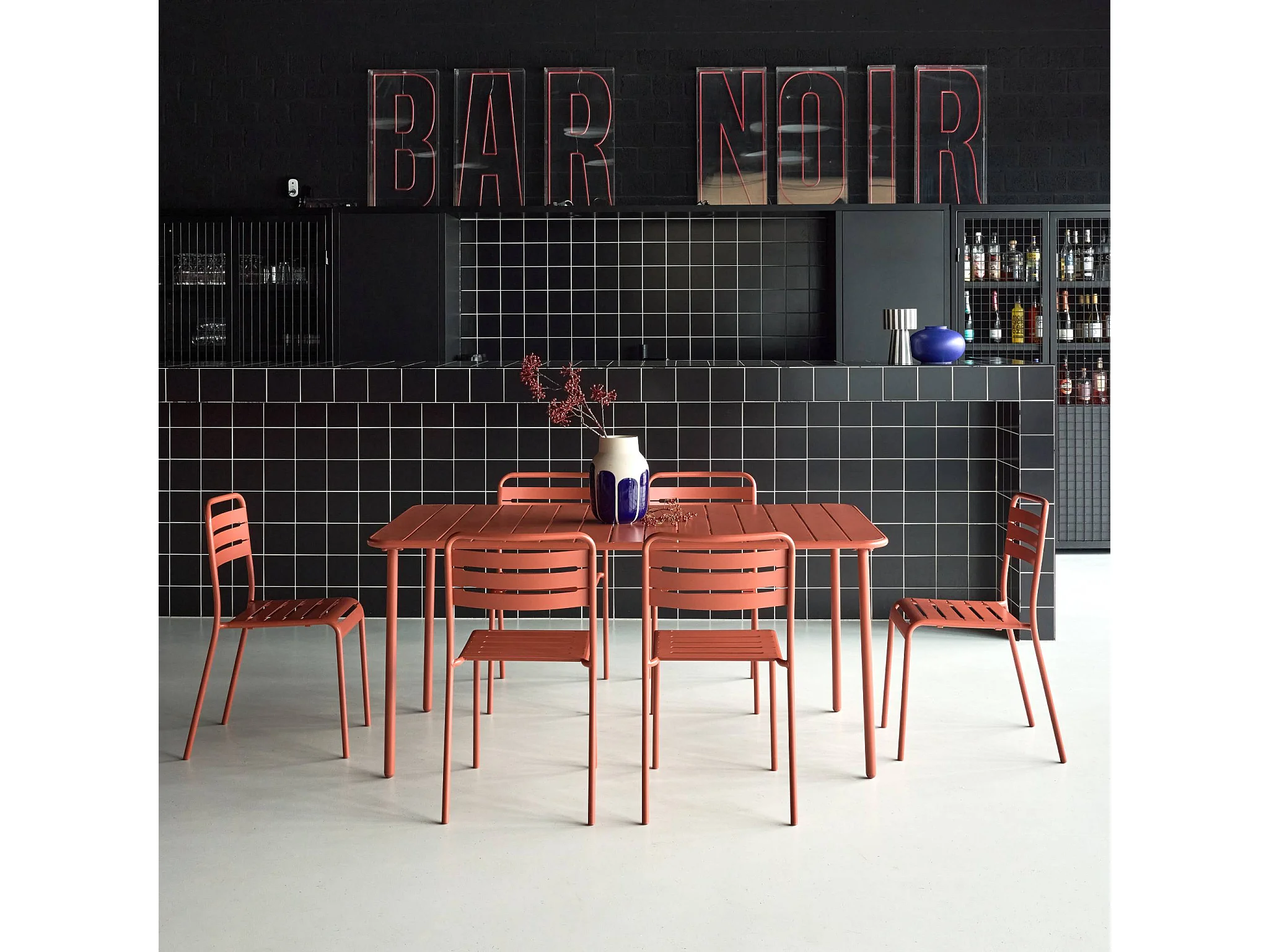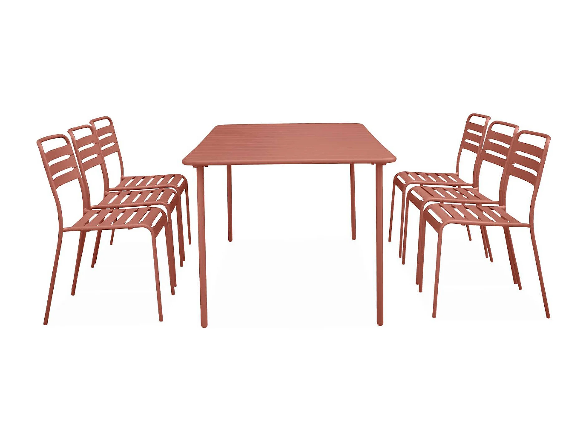 Mesa de jardín de metal con 6 sillas terracotta