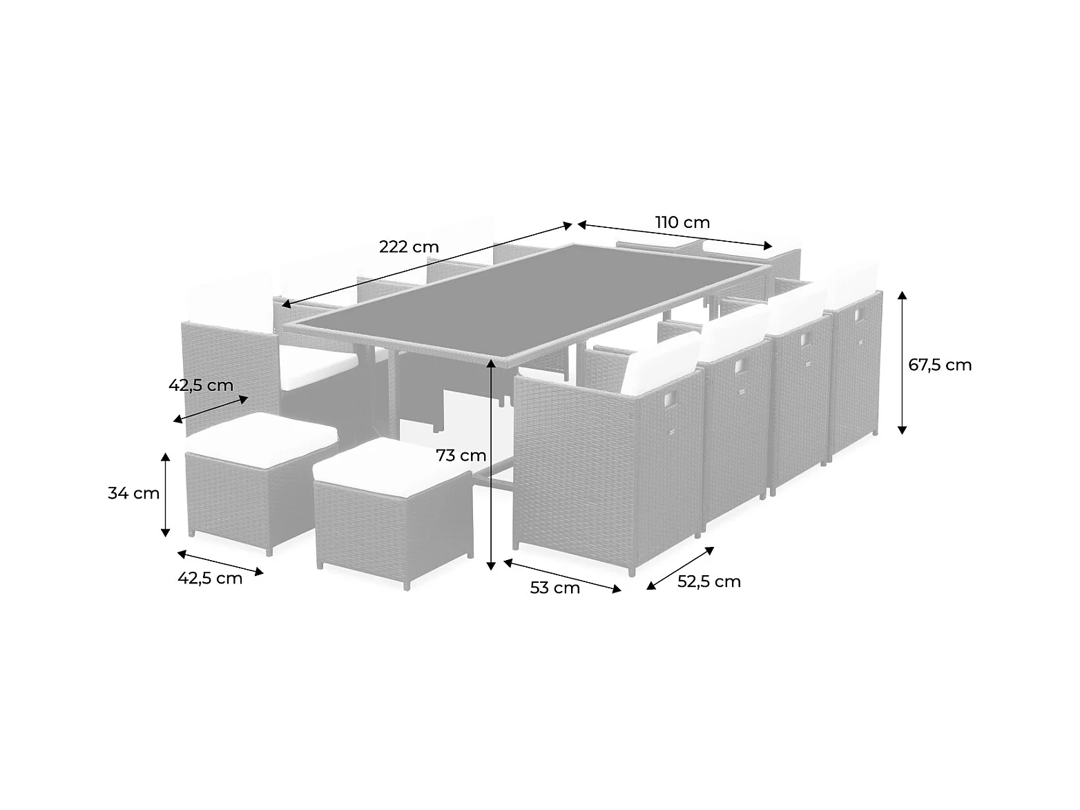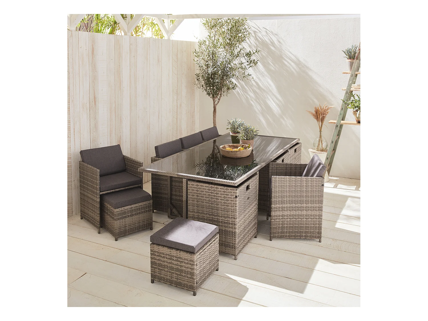 Mesa de jardín de resina con capacidad de 12 plazas varios tonos de