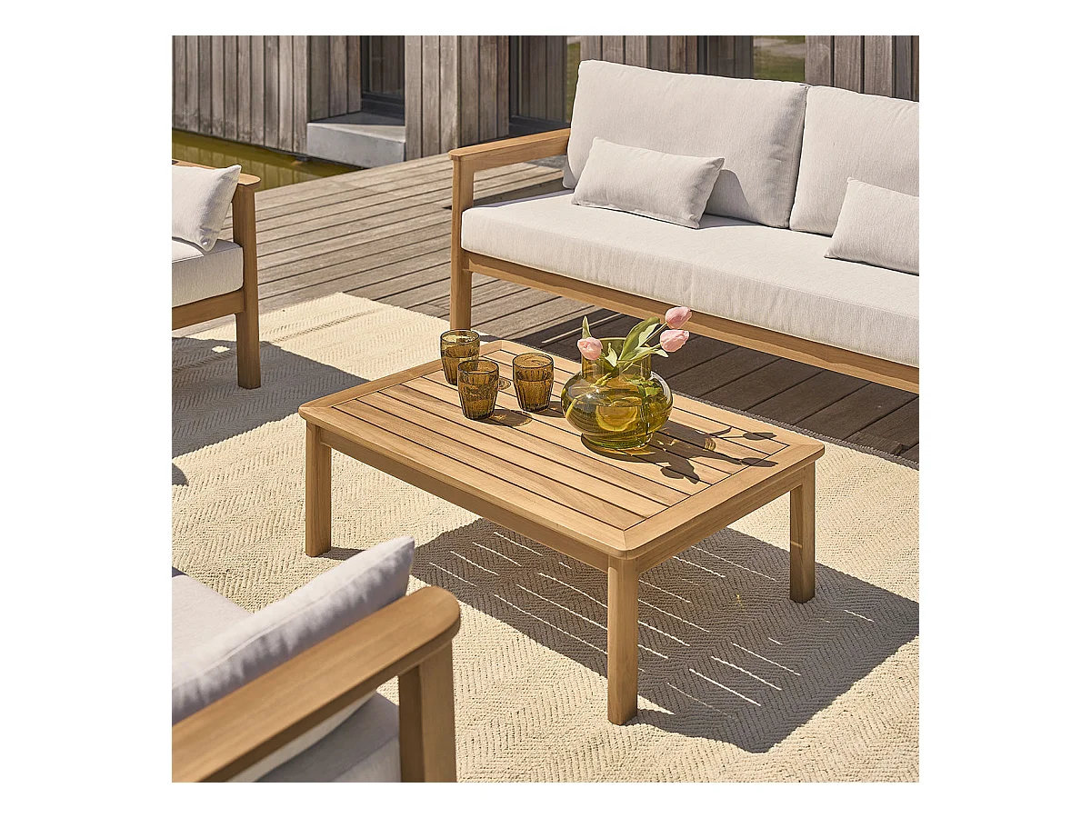 Mesa auxiliar jardín tapa madera ratán PE beige 100x40x75 cm