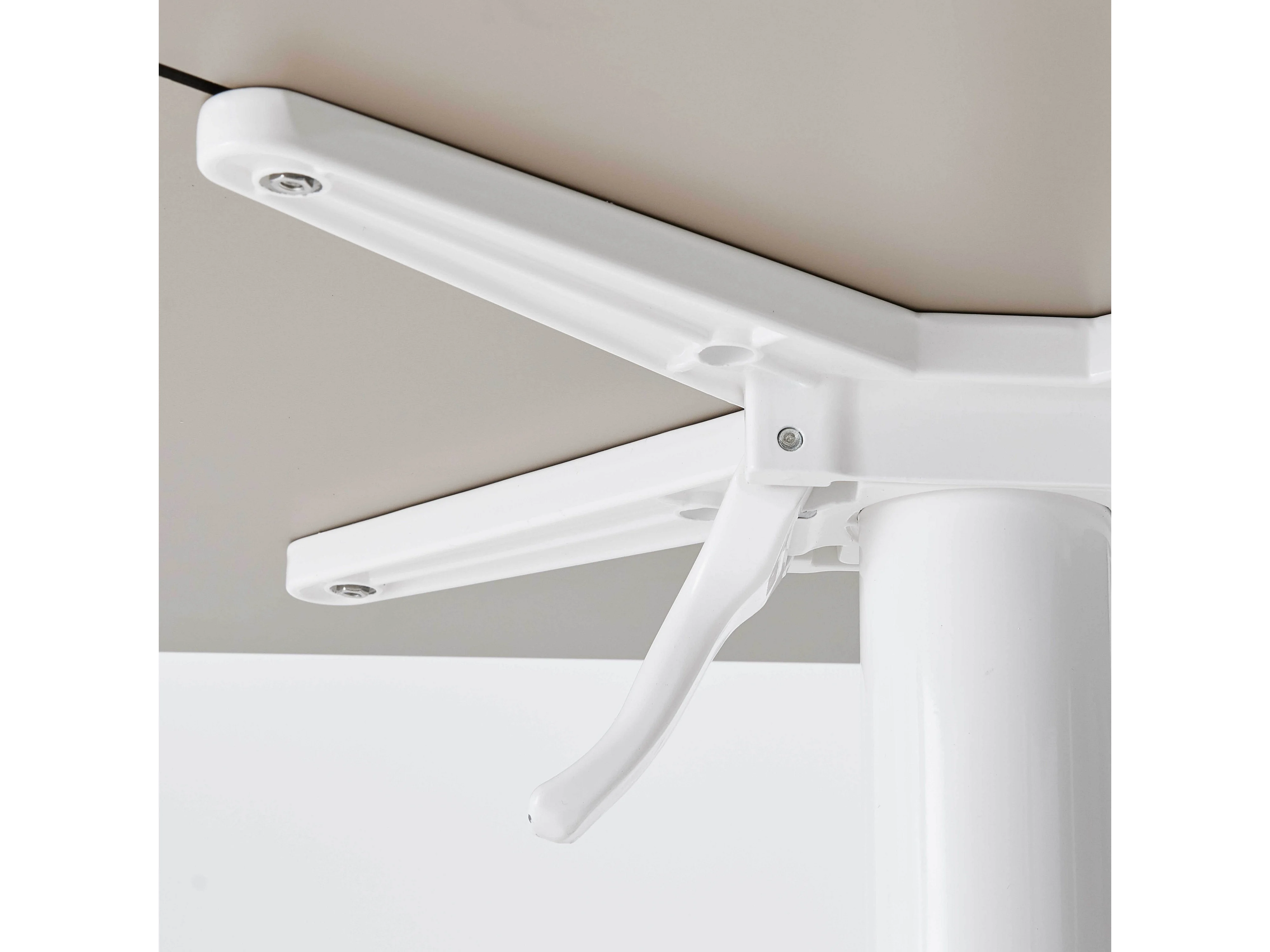 Mesa de jardín en laminado marrón topo y 2 sillones blancos