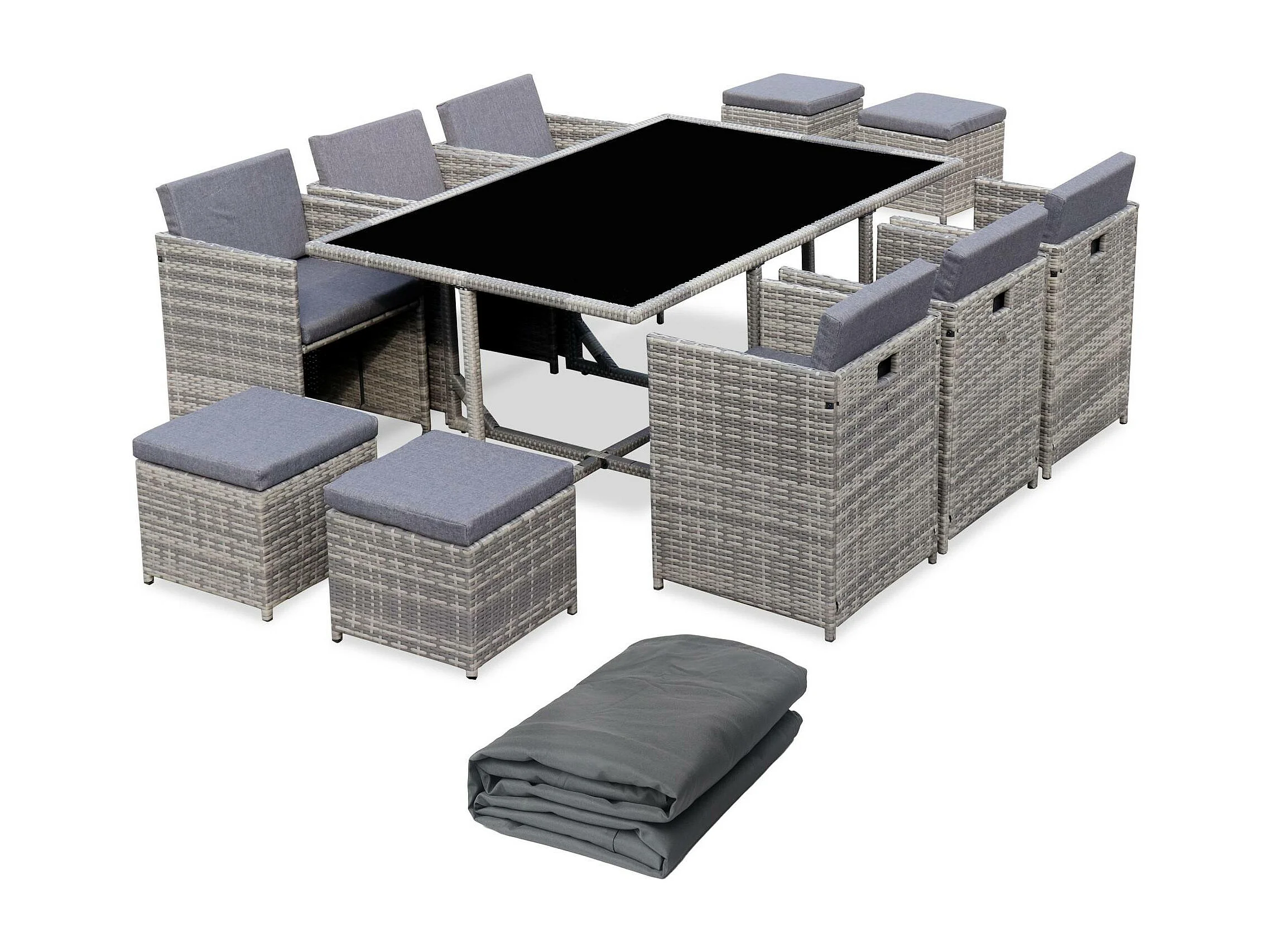 Mesa de jardín encastrable resina con 10 sillones + cobertor varios