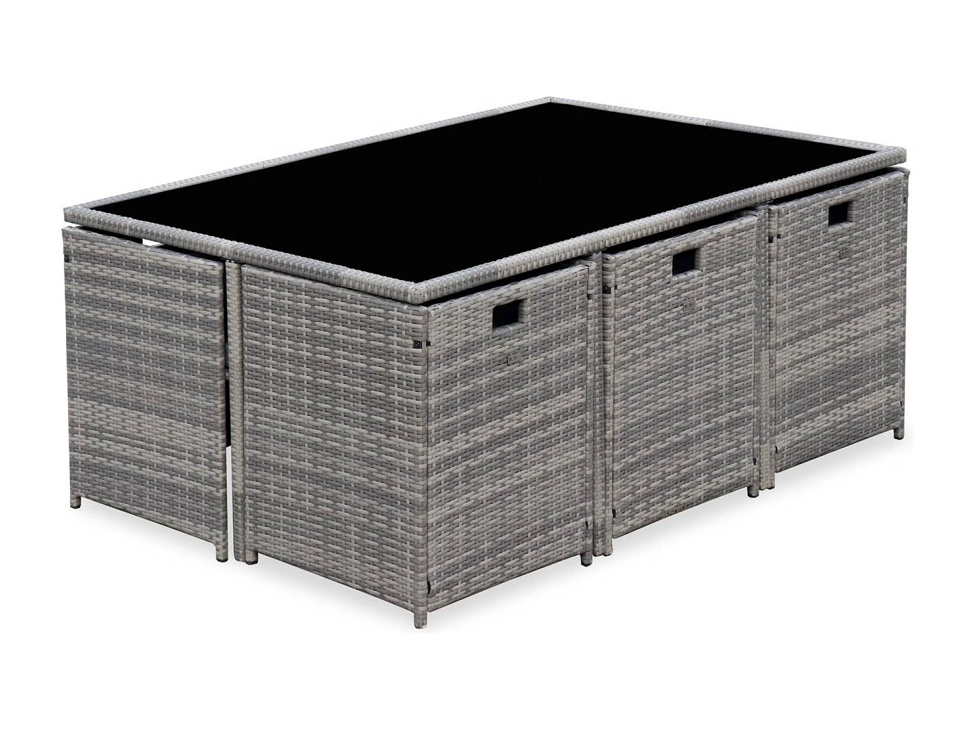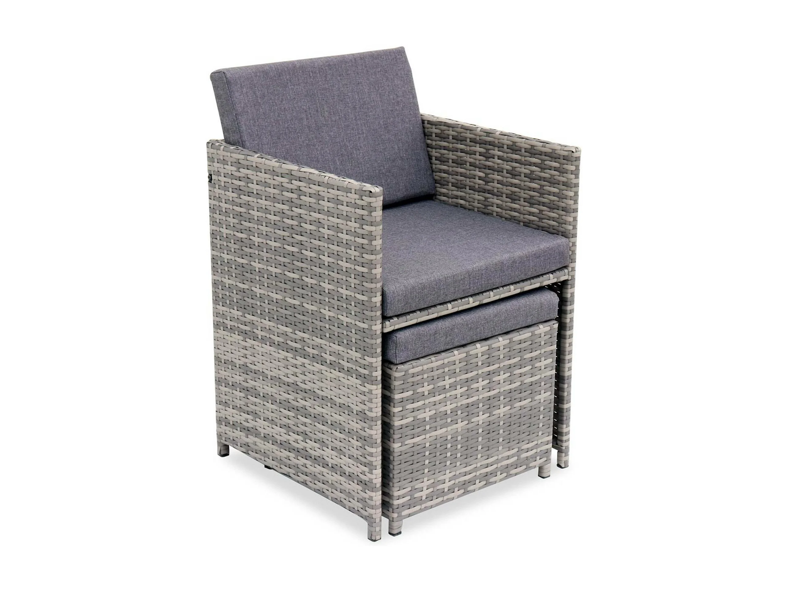 Set de comedor de jardín 11 piezas y cojines ratán sintético gris