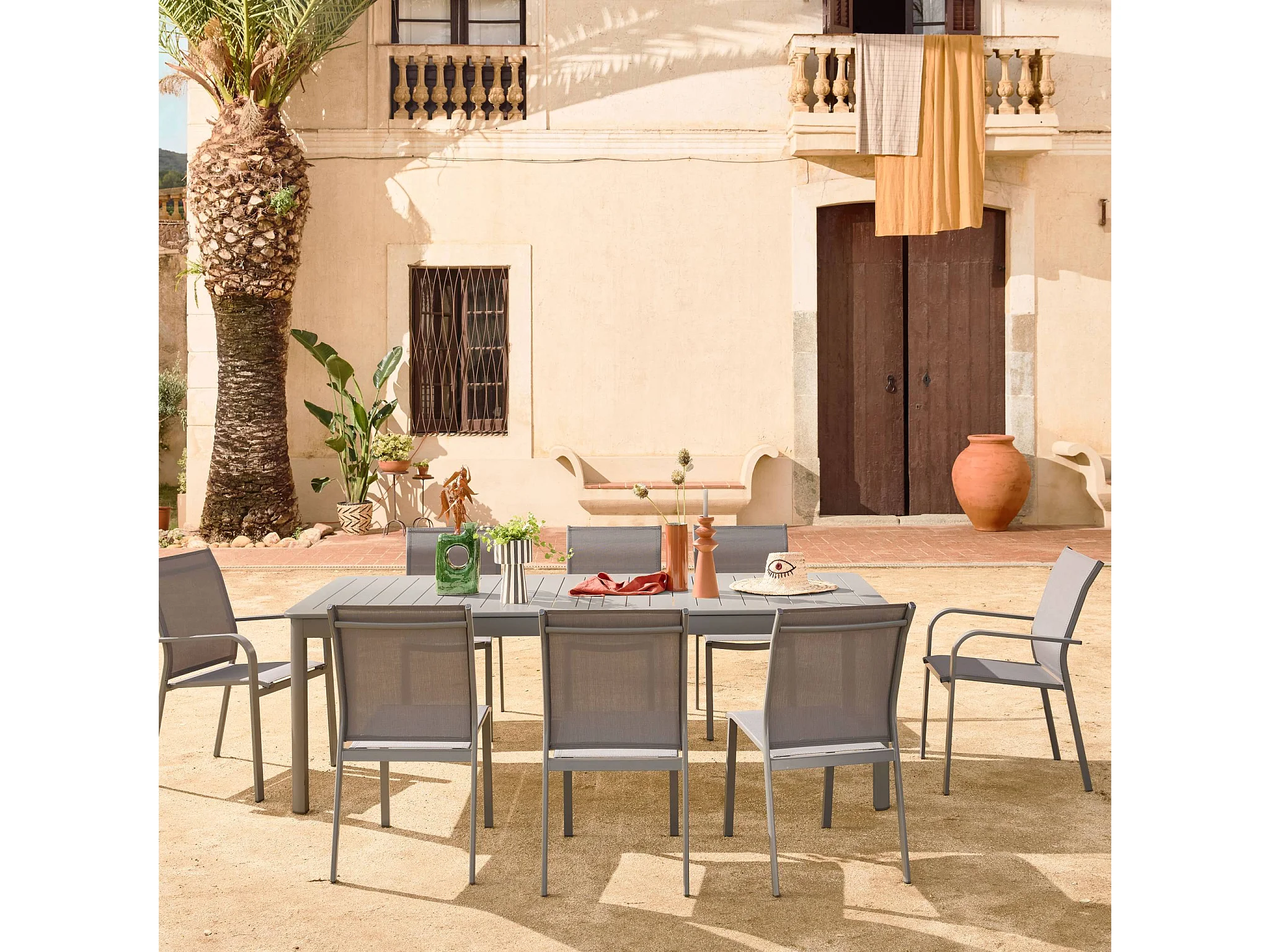 Mesa de jardín extensible de aluminio con 10 sillas antracita