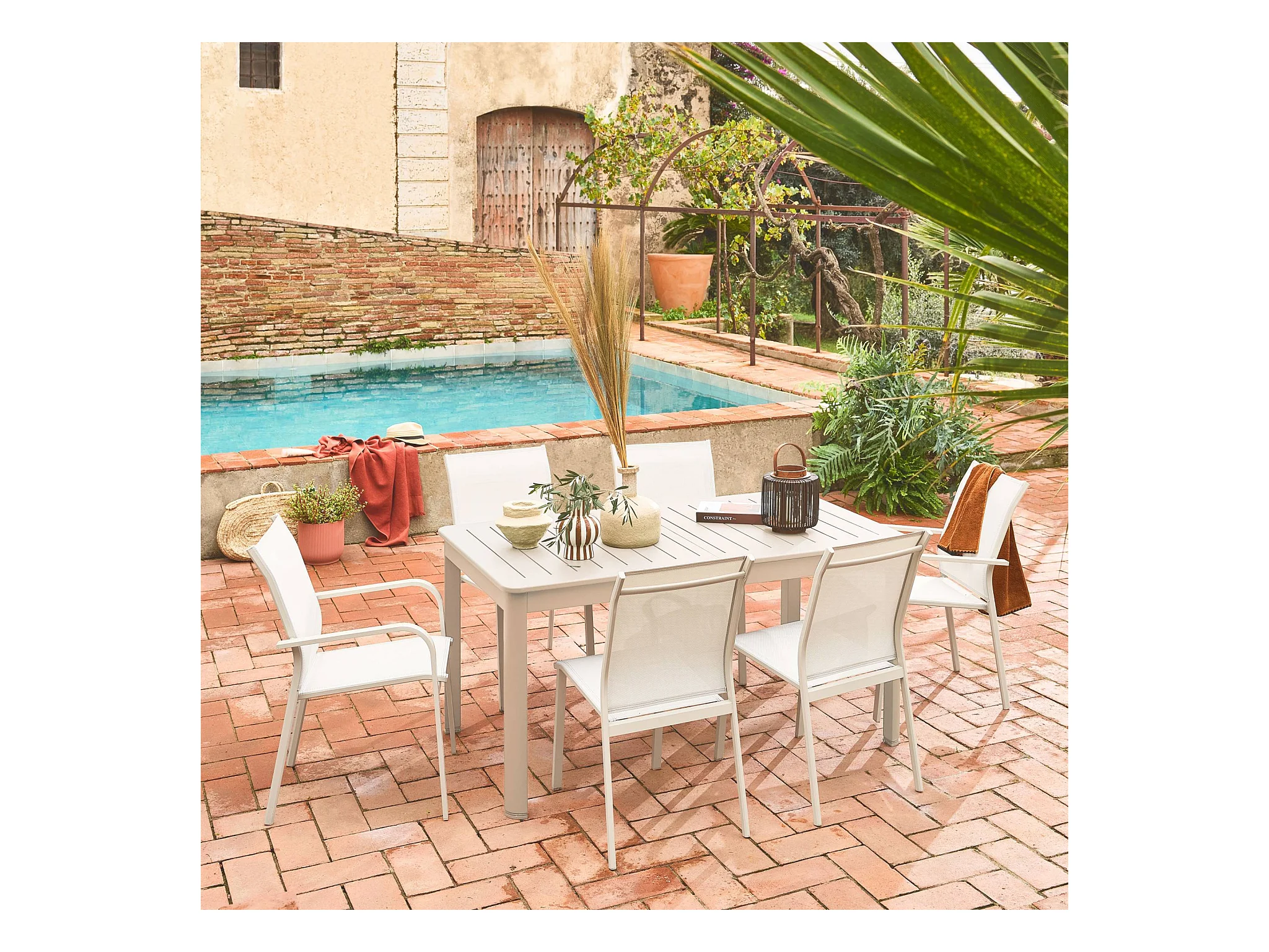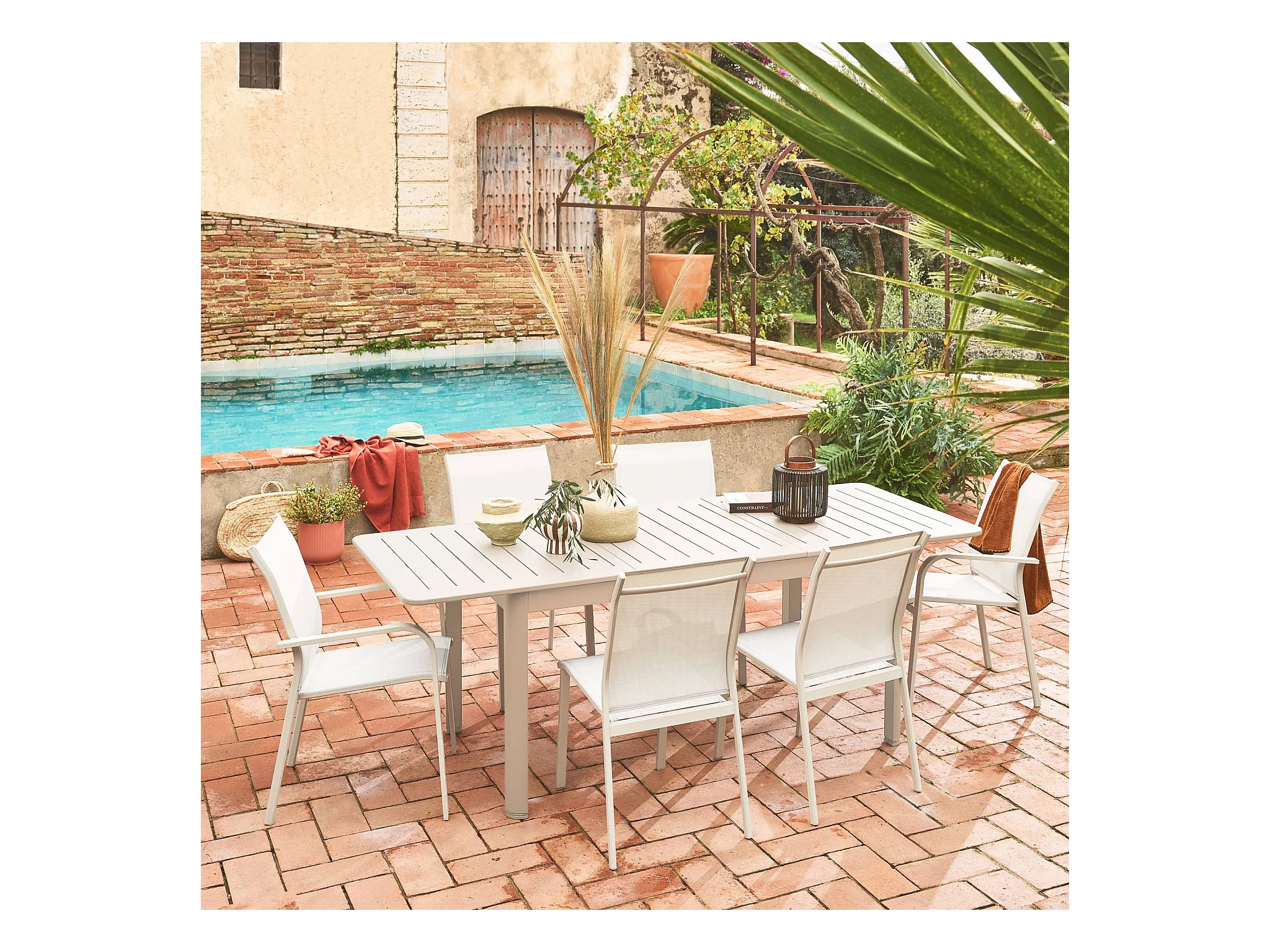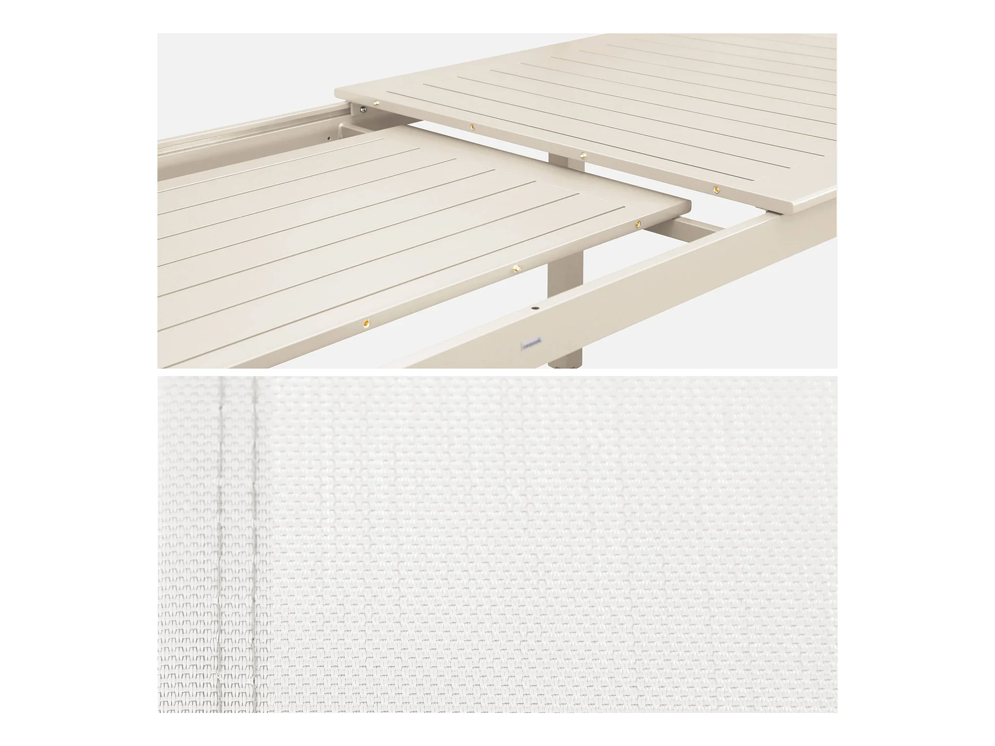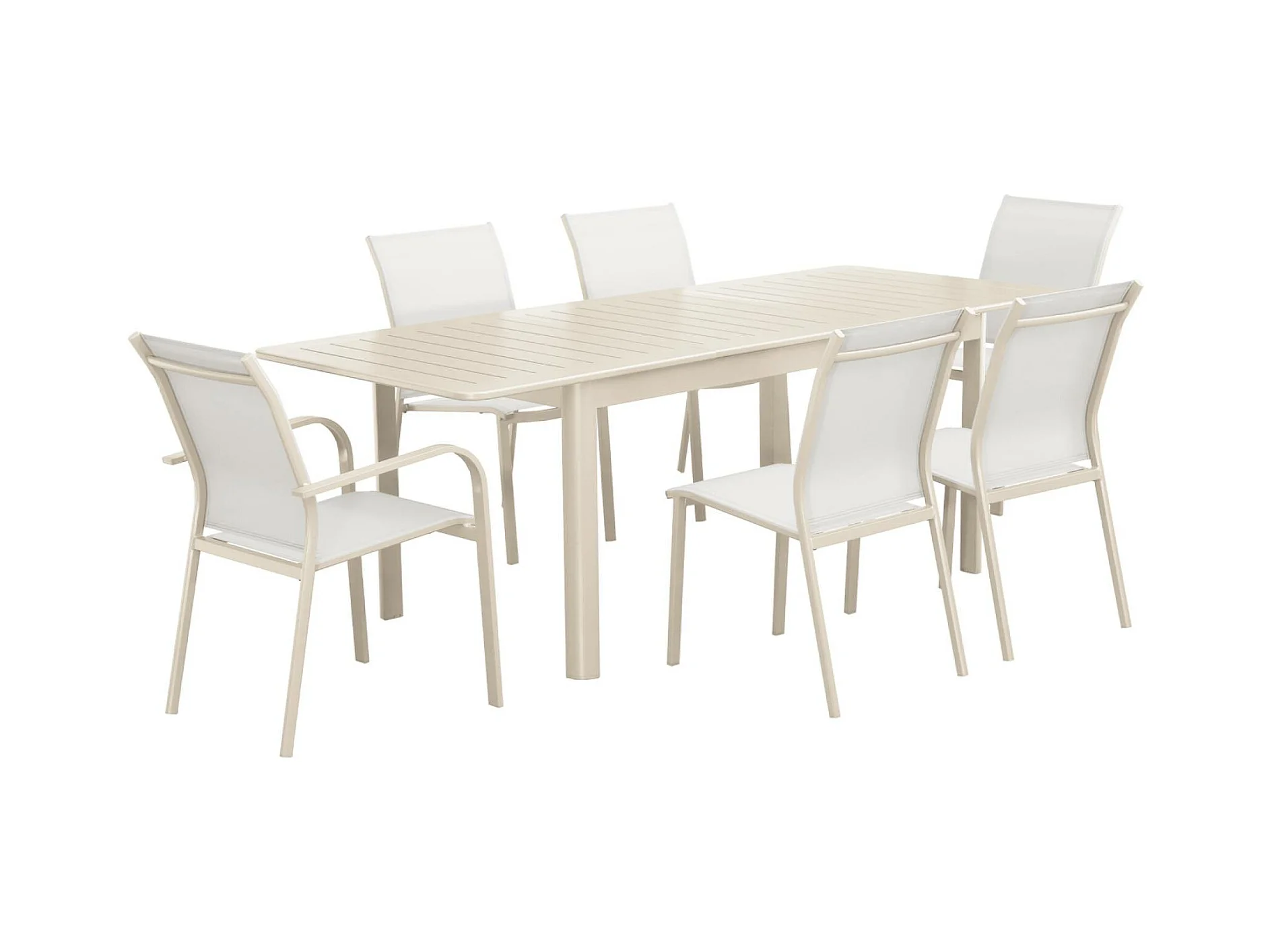 Mesa de jardín extensible de aluminio con 6 sillas beige
