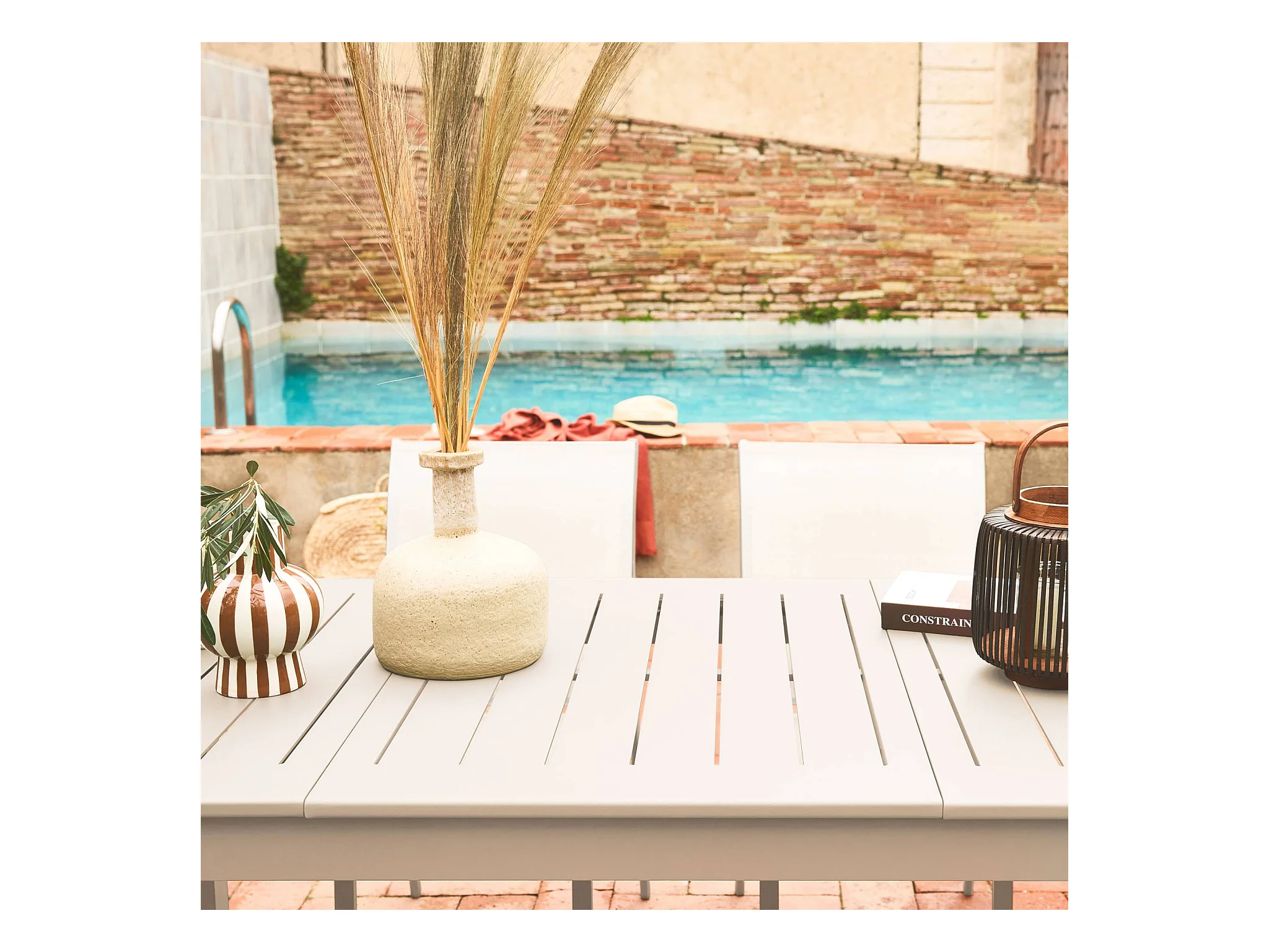 Mesa de jardín extensible de aluminio con 10 sillas beige