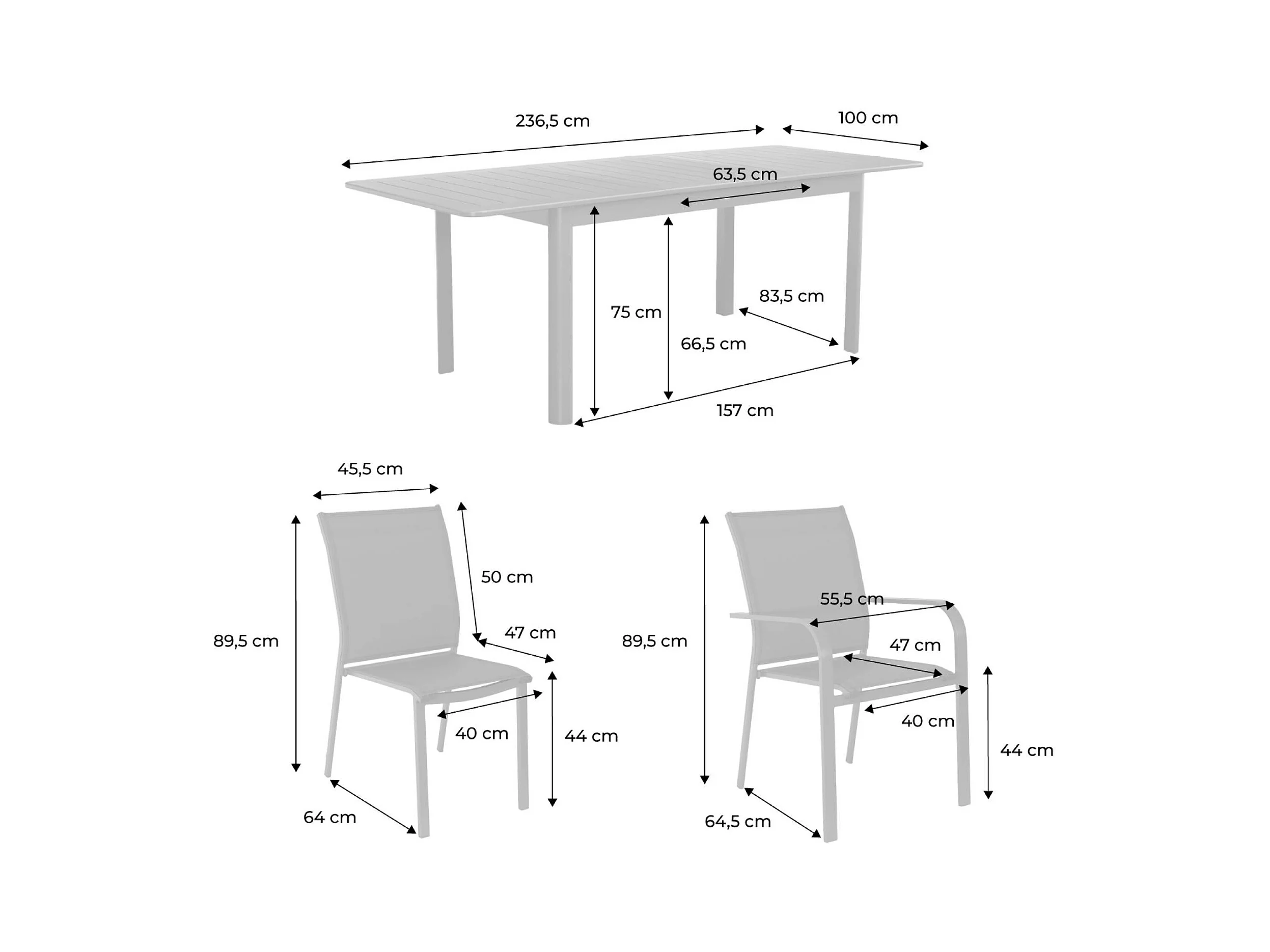 Mesa de jardín extensible de aluminio con 6 sillas beige