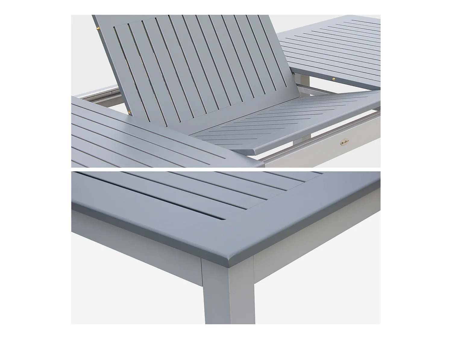 Mesa de jardín extensible de aluminio de 8 plazas gris